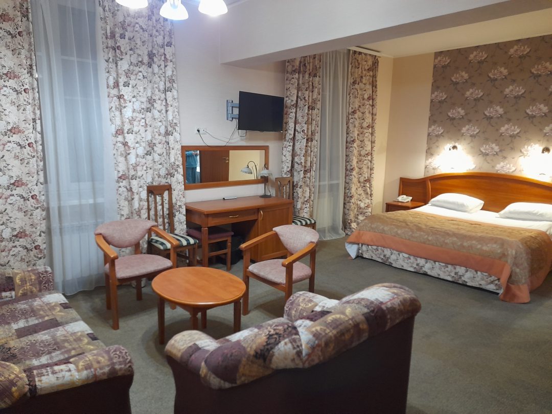 Из недостатков: нет кондиционера, летом будет жарко. Постельное белье хоть и белоснежное и хрустящее, но пододеяльник был с дыркой. У чайника сломана крышка. На этаже всего 1 куллер с питьевой водой и стоял он в противоположном конце коридора.