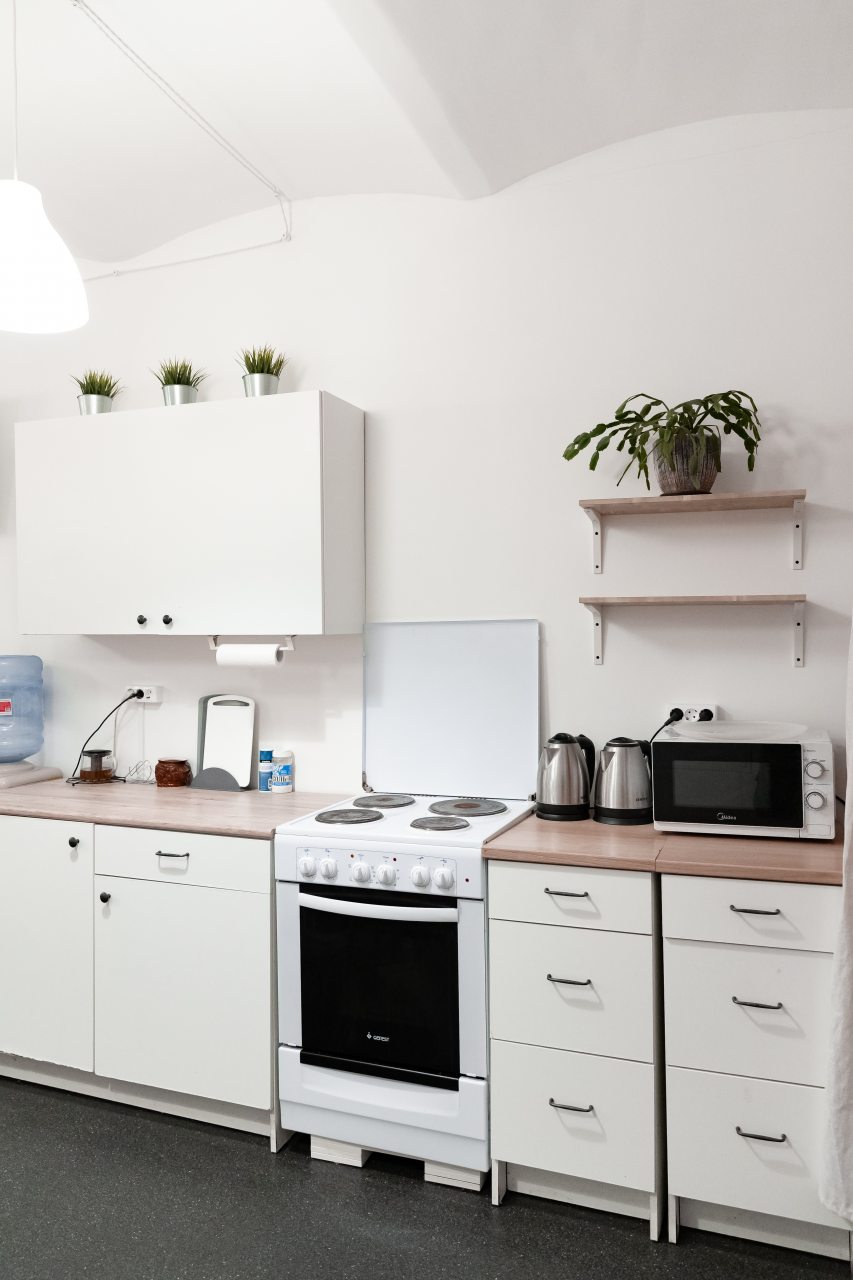 Общая кухня обеспечена посудой и приборами, чтобы приготовить вкусные блюда. Напротив здания есть супермаркеты и кафе быстрого питания.