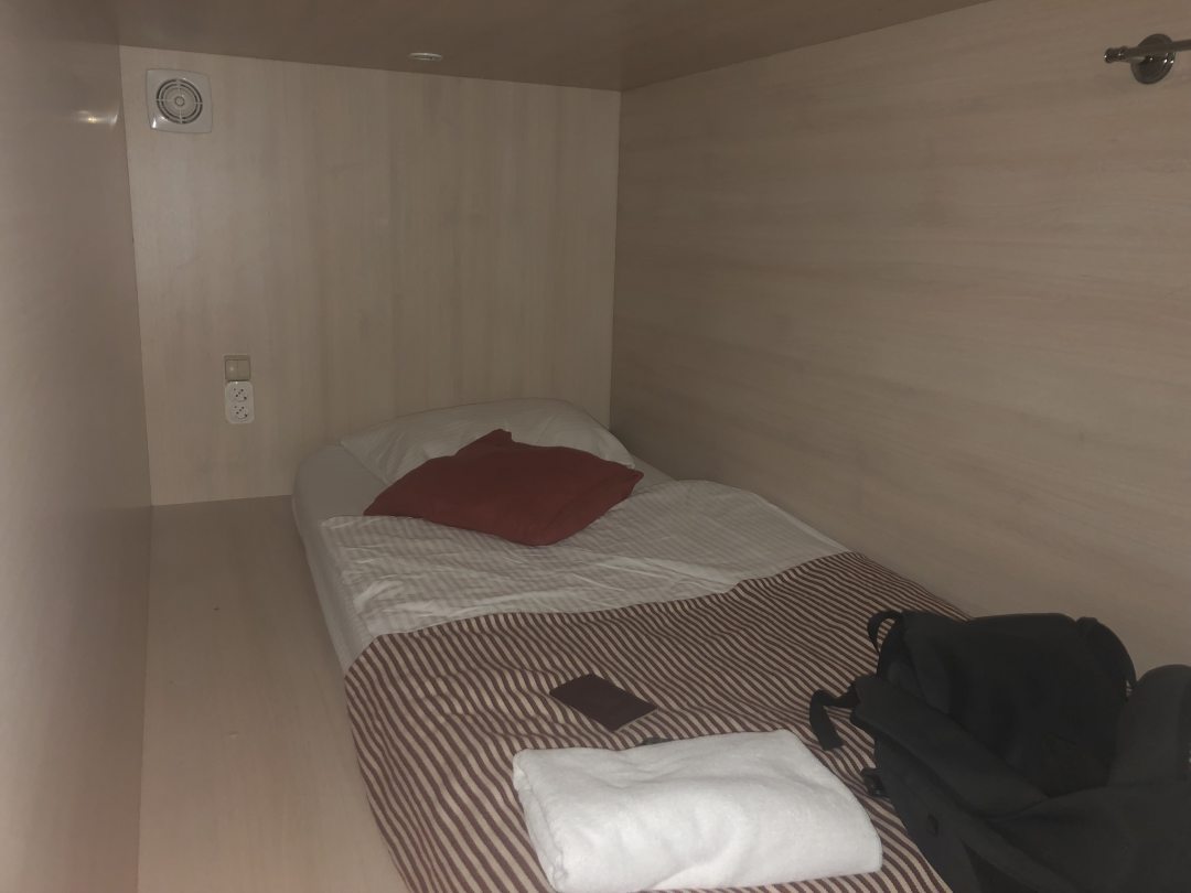 В хостеле отличный ремонт сделан, понравилось и как оборудованы капсулы. Чистая, просторная ячейка оборудована вентиляцией и светом. Здесь просторно, можно хорошенько развернуться. Розетка тоже имеется. Постельное белье качественное предоставлено. В санузле модная современная сантехника в отличном рабочем состоянии. Конечно здесь есть и отдельные номера, но так как я приезжал один, меня интересовала исключительно капсула.