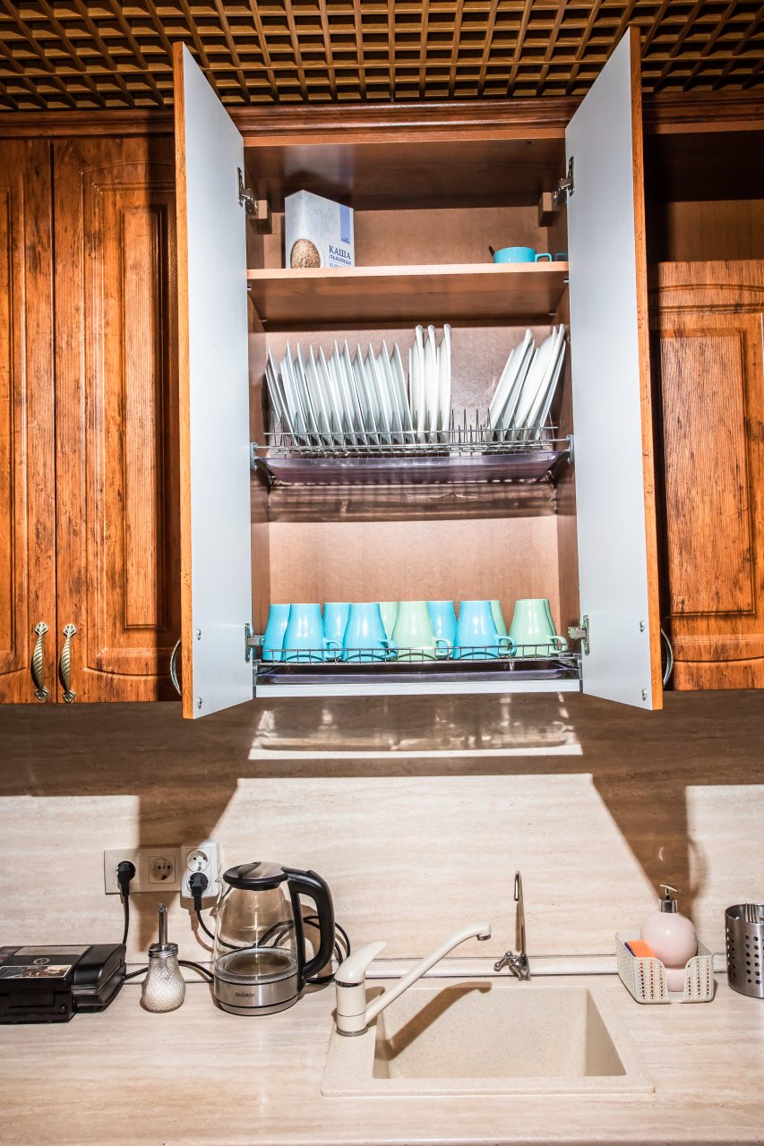 - Все тарелки, стаканы, столовые приборы и другая кухонная посуда продезинфицированы
