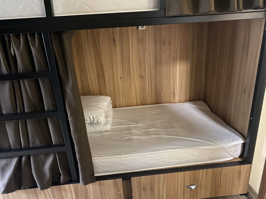 Все достаточно достойно: чистое бельё, хорошие матрасы, места общего пользования тоже приличные. Администратор вежливый, приветливый. Немного непривычно было из за стеклянной двери, она хоть и матовая, но свет проникает, из коридора проникает.