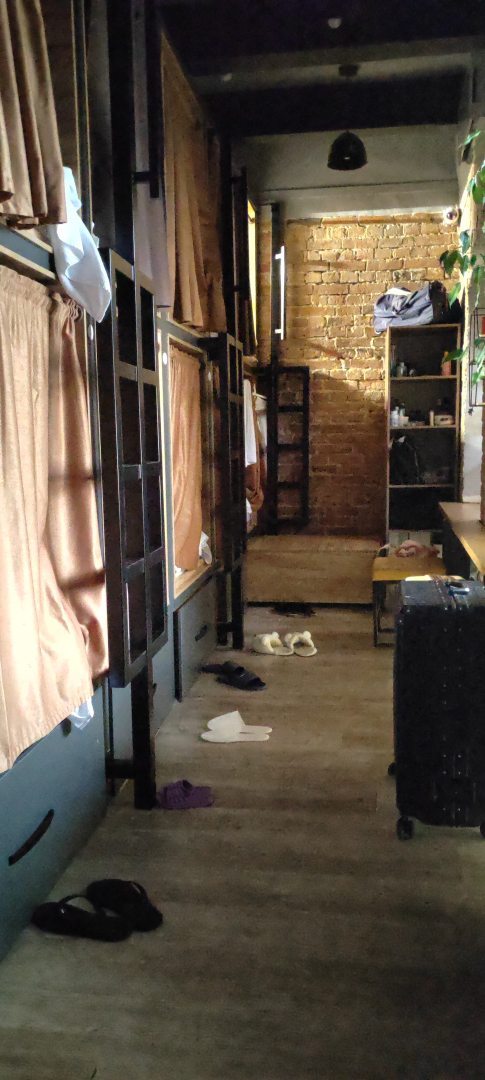 Приятный хостел, симпатичный интерьер, хорошее местоположение, удобные капсулы для сна, добротные и плотные шторки, есть ящики для вещей с ключами - хватает на то, чтобы разместить пару рюкзаков и две пары обуви, в душе есть шампуньгель для душа, можно попить чай на кухне, есть холодильник и микроволновка. Удобно, что можно заселиться ночью.