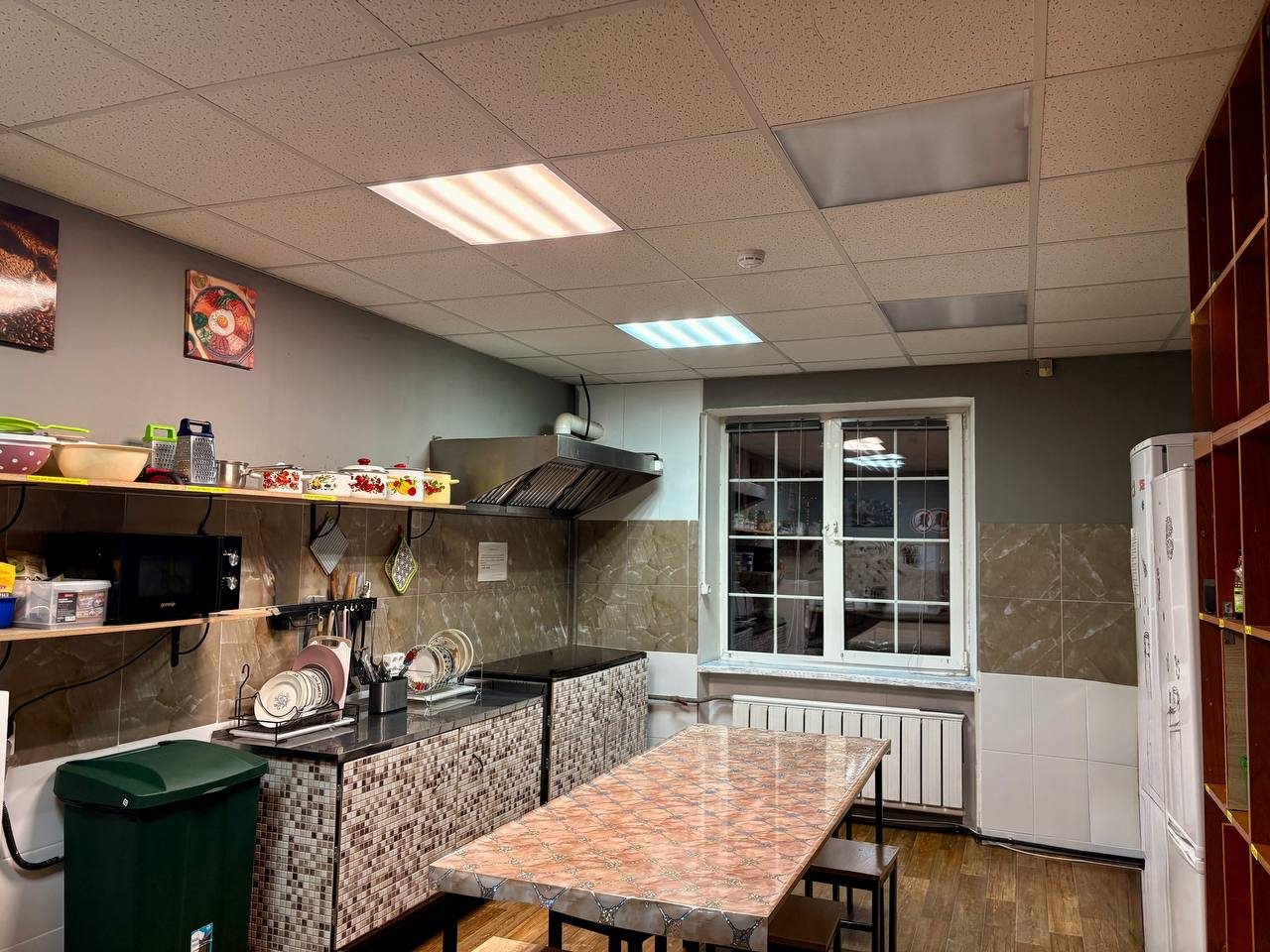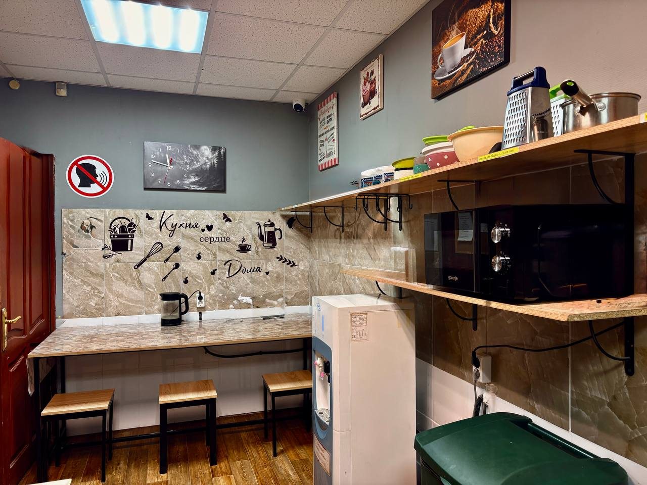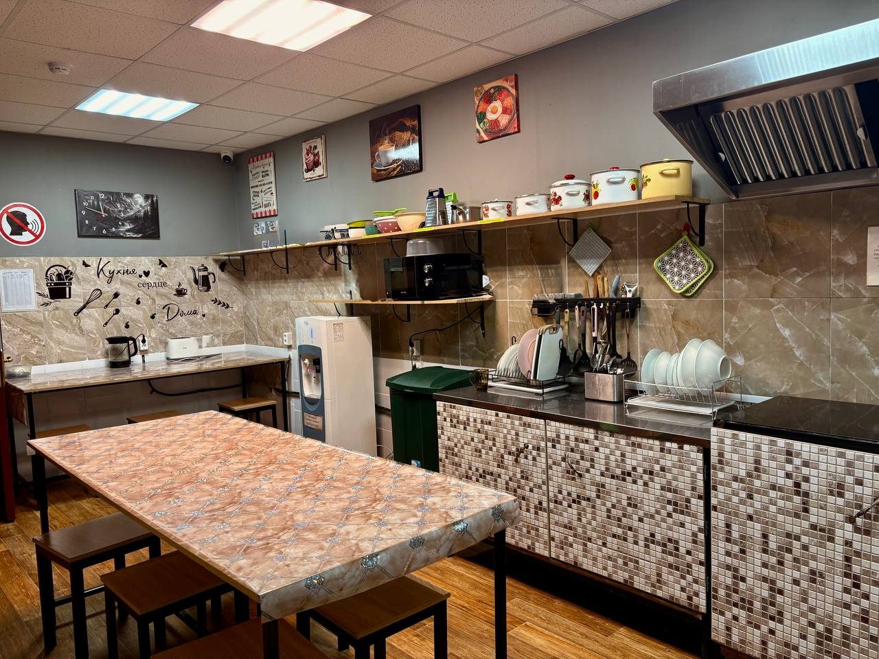 На общей кухне установлен холодильник для продуктов, есть посуда и чайники. В шаговой доступности столовая и кафе.