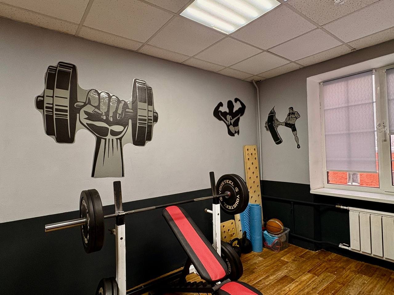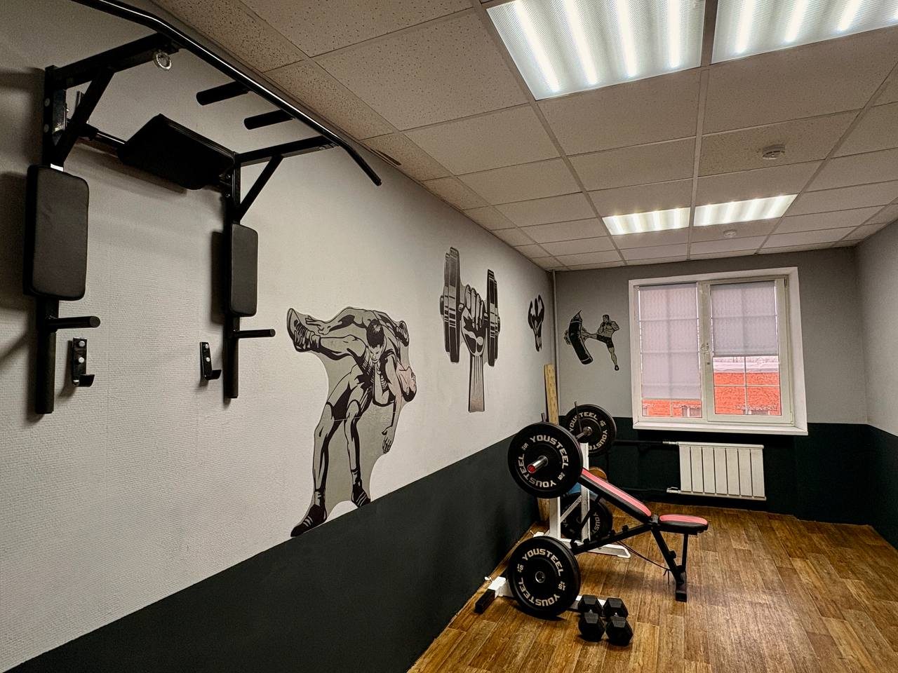 Также имеется спортивная комната, совмещённая с комнатой для сушки постиранной одежды. В спортивной комнате: турник, штанга, гири, гантели, резинки, коврики.