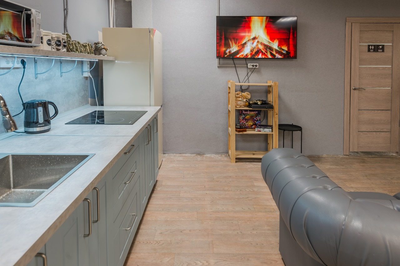 Для вашего Комфорта мы предусмотрели: кухню со всей необходимой техникой (сенсорная варочная панель, холодильник 2 шт, микроволновка 2 шт, электрический чайник, фильтр для воды).