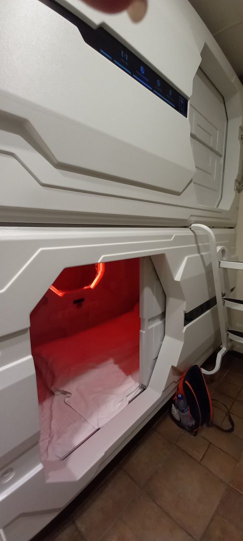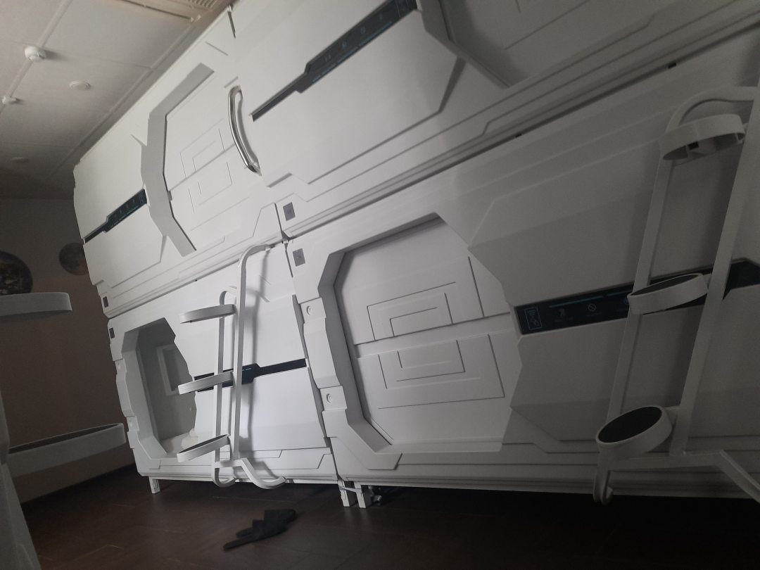 К выбору гостей — общие женские и мужские комнаты, семейные номера с двуспальной кроватью и одноместная капсула. В каждом есть удобные спальные места, чистое постельное белье, индивидуальные розетки и светильники, кондиционер и Wi-Fi на всей территории. На цокольном этаже обустроены санузел с душевыми, кухонная зона и гардеробная с камерой видеонаблюдения.
