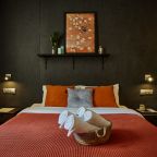 Номер соответствует фото на сайте. Просторный санузел. В номере есть всё необходимое - мыло, гель, шампунь, фен, три полотенца, тапочки, чайник, кружки, шесть (!) розеток, стойка с вешалками, стол, холодильник, кондиционер, телевизор. А также предметы, которые бывают в номере отеля не всегда - беруши, фумигатор, щётка для обуви. Создатели отеля постарались наполнить номера уютными мелочами - подушечки, вазочки, коробка для чая (в ней чай, кофе, сливки, сахар, соль, шоколадка). Уборка номеров добротная. Можно заказать завтрак в номер, но я не пробовала. Завтрак классический, стоит 800 р. На 4 этаже есть кухня и утюг. После выезда вещи можно оставить в камере хранения (закрыть на ключ). На этаже стоят зонты для тех, у кого нет своего.
