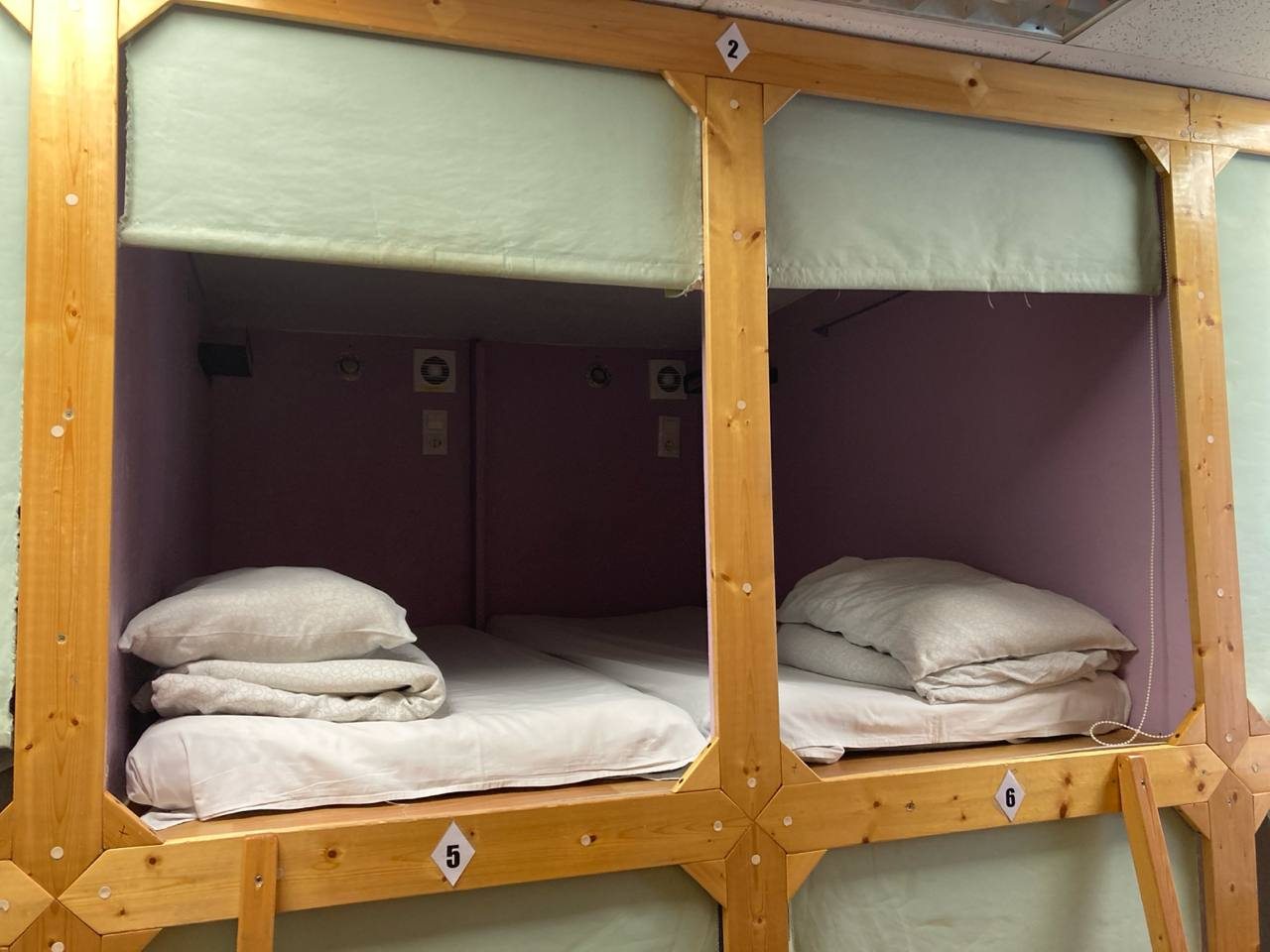 Двухместная капсула,я была одна,классно выспалась,тишина,хотя мужчины одни