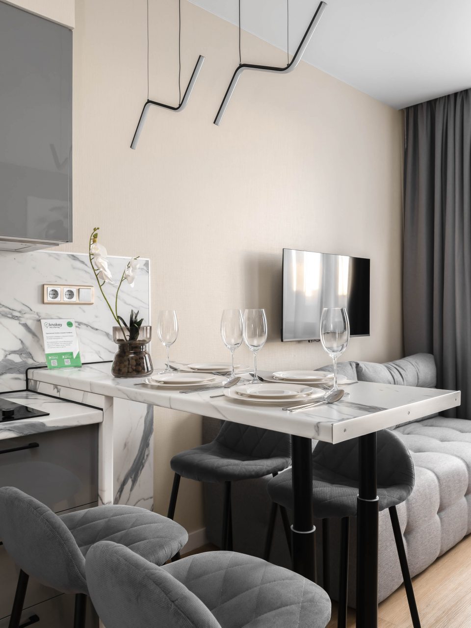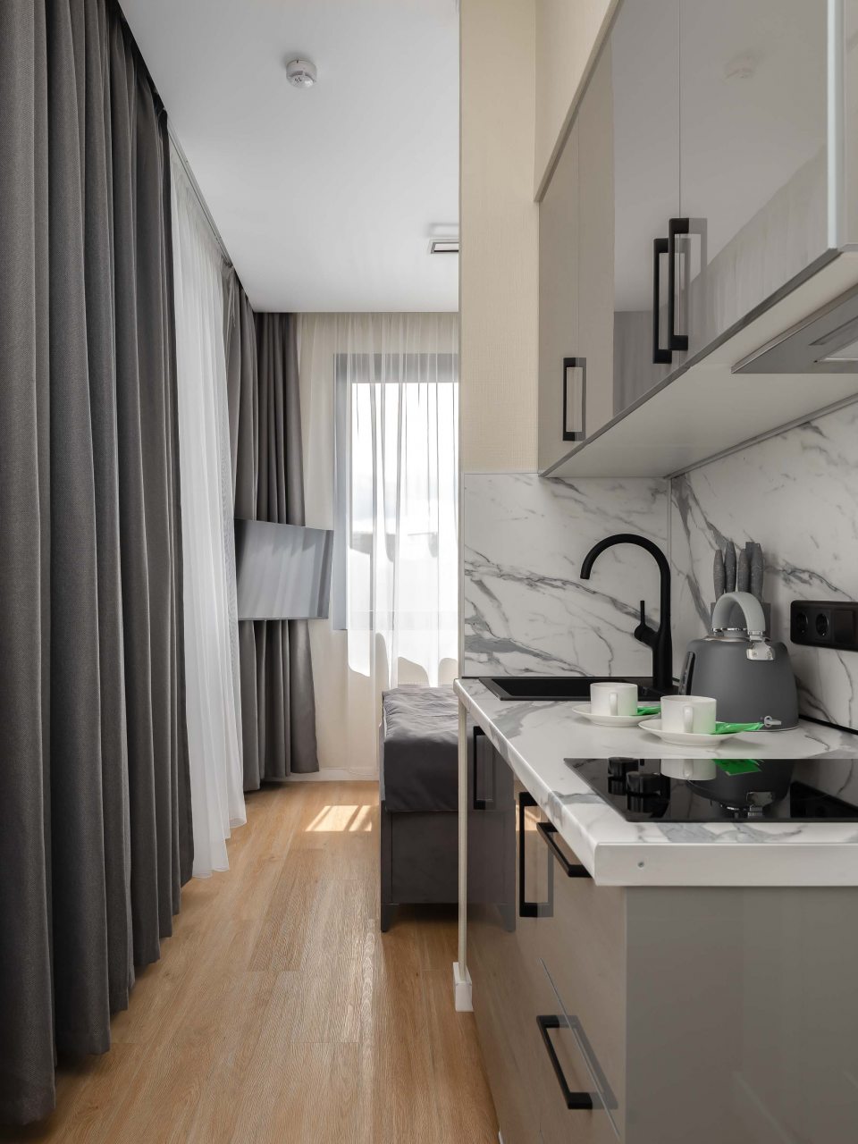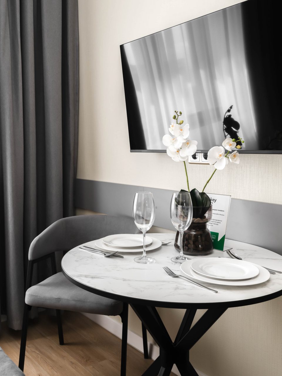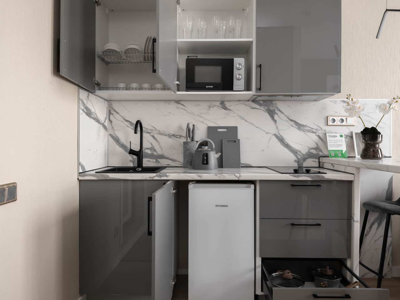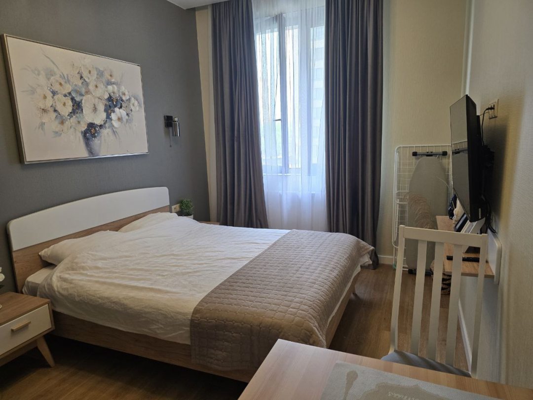 Удобное расположение, чистый, красивый и уютный номер, простота заселения и выезда. В номере есть необходимая бытовая техника.