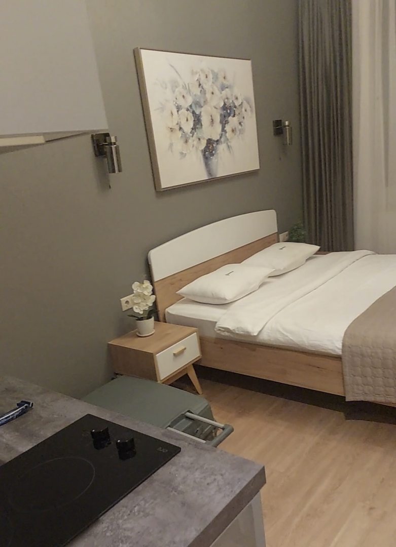 Понравилось буквально всё, начиная от заселение и заканчивая проживанием. В день заселения прислали детальную инструкцию, даже с видео как добраться от метро до отеля. Метро находится недалеко, 6-7 минут пешком. В номере чистота и порядок, есть всё для проживания, плита , холодильник, микроволновка, чайник, посуда. Очень понравилась кровать, матрас отличный, я выспалась после долгой дороги, за это вообще огромное спасибо))). Ванная и туалет вообще без комментариев .Если возникают какие-то вопросы ,служба поддержки всегда на связи. Буду однозначно и сама останавливаться там и рекомендовать друзьям.