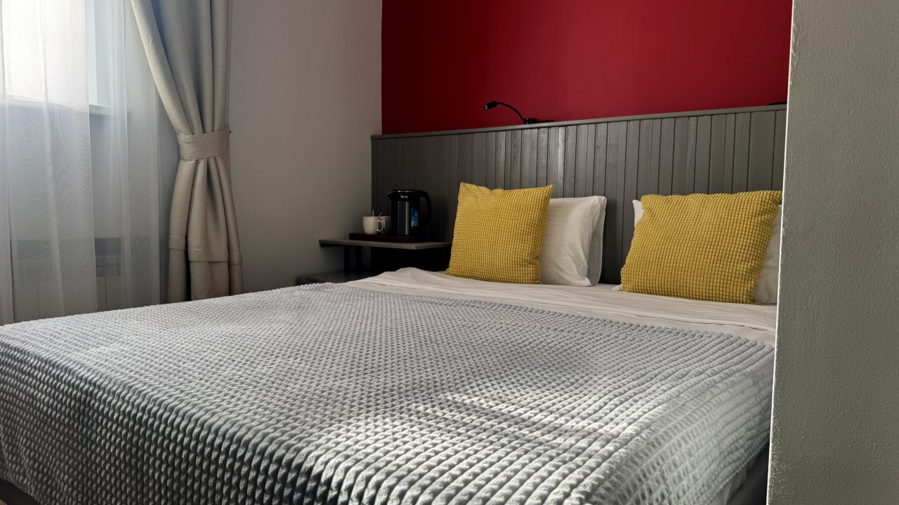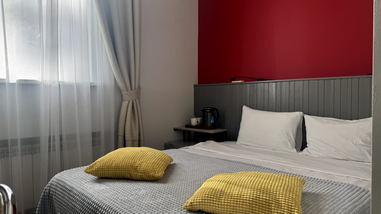 Просторные номера с современным ремонтом ждут гостей. Комнаты оборудованы всем необходимым для комфортного размещения — широкие кровати, зеркало, плотные шторы на окнах, кондиционер. Предоставляются постельное белье и полотенца. Оборудован отдельный санузел с ванной, в наличии фен.