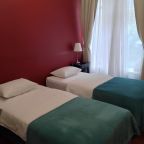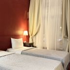 Удобный вариант для тех, кто хочет отдохнуть между поездами. Вокзал находится относительно недалеко, так что на такси уйдет не так и дорого. В отеле просторные номера, сделан современный ремонт, кровать была удобной, достаточно широкая, на окнах – плотные шторы, тут комфортная обстановка.