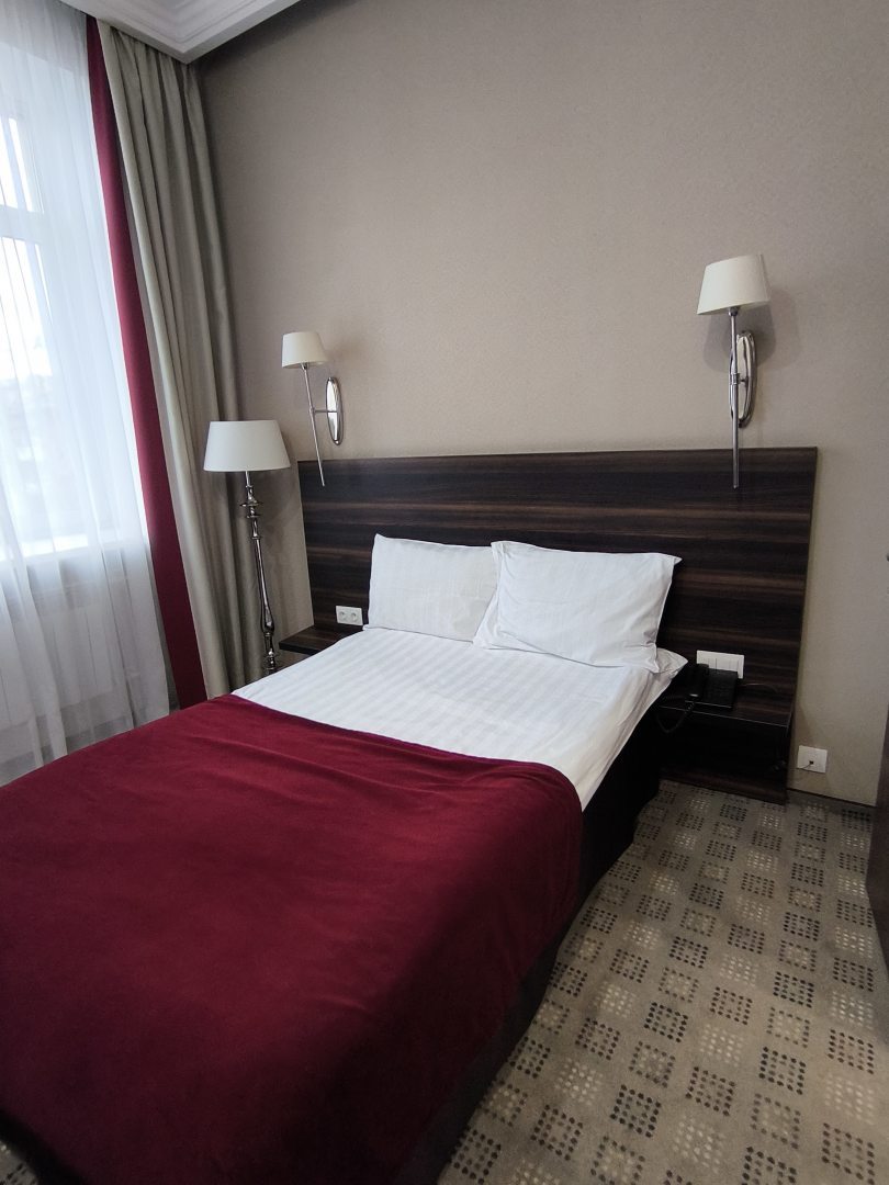 Очень удачное расположение отеля. Останавливалась на 2е суток. Окна выходили во двор, никакого шума не было. В гостинице есть кухня, на каждом этаже кулер, чайные пакетики. В номере чисто, есть все необходимое. Спасибо)