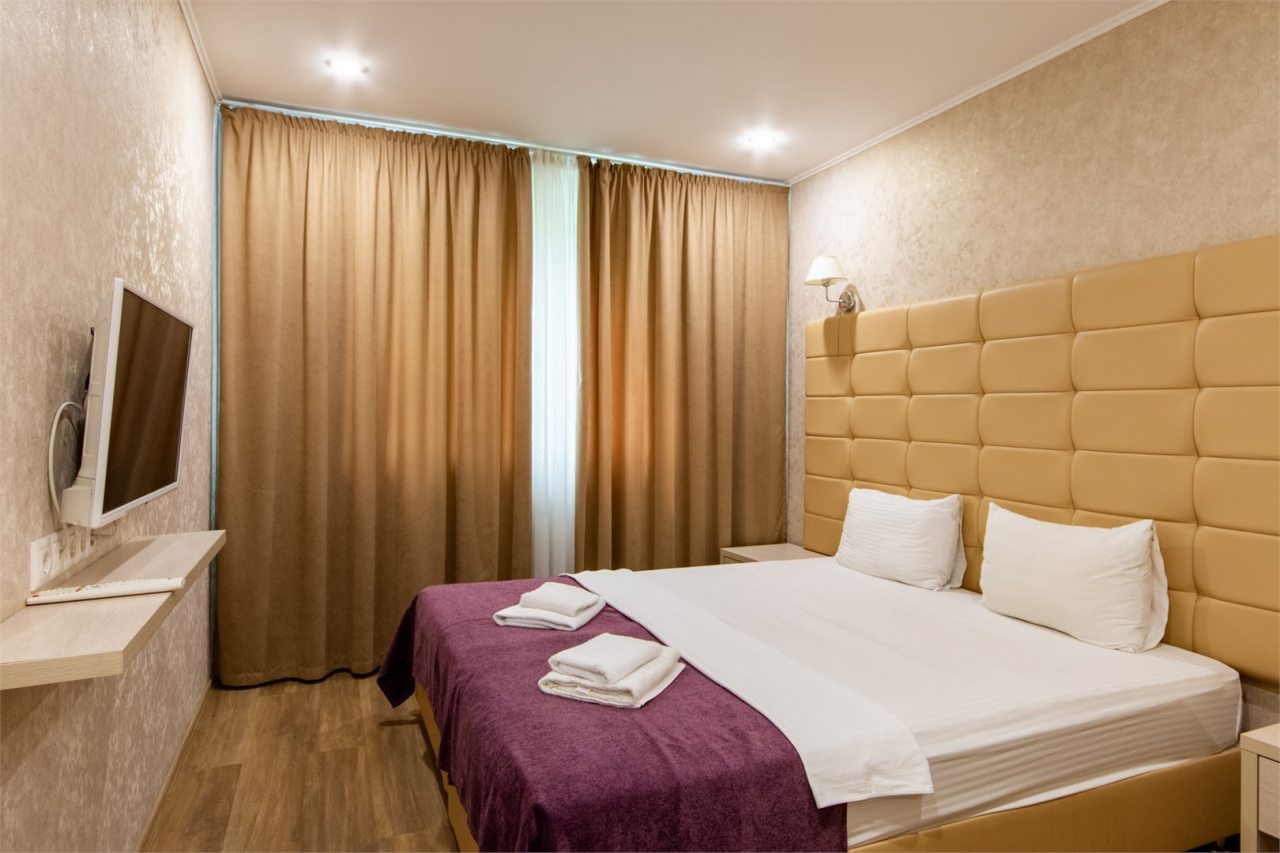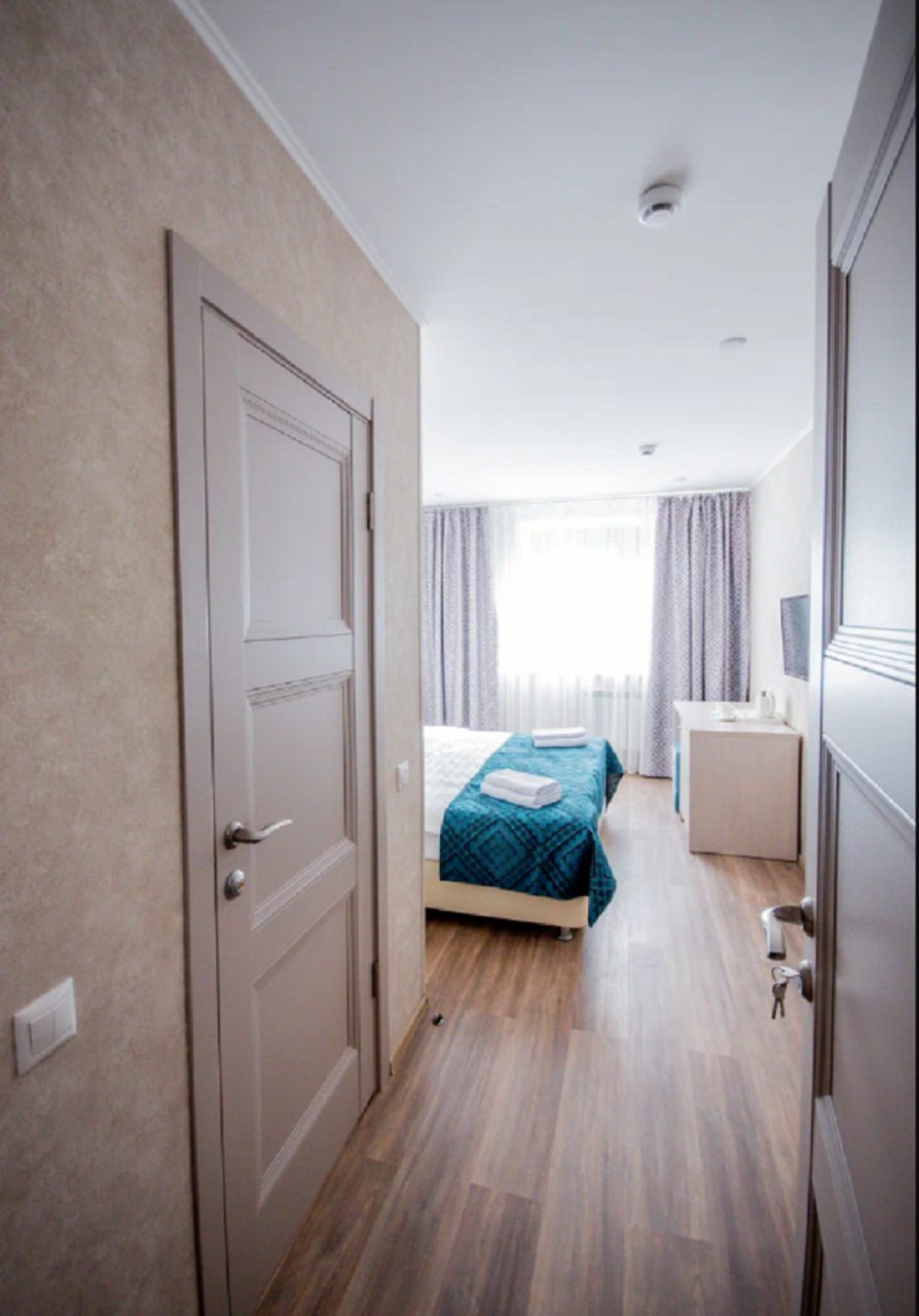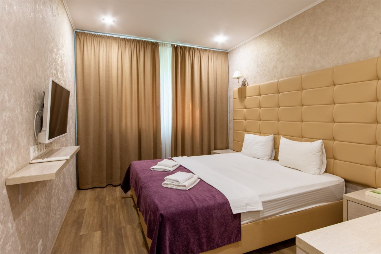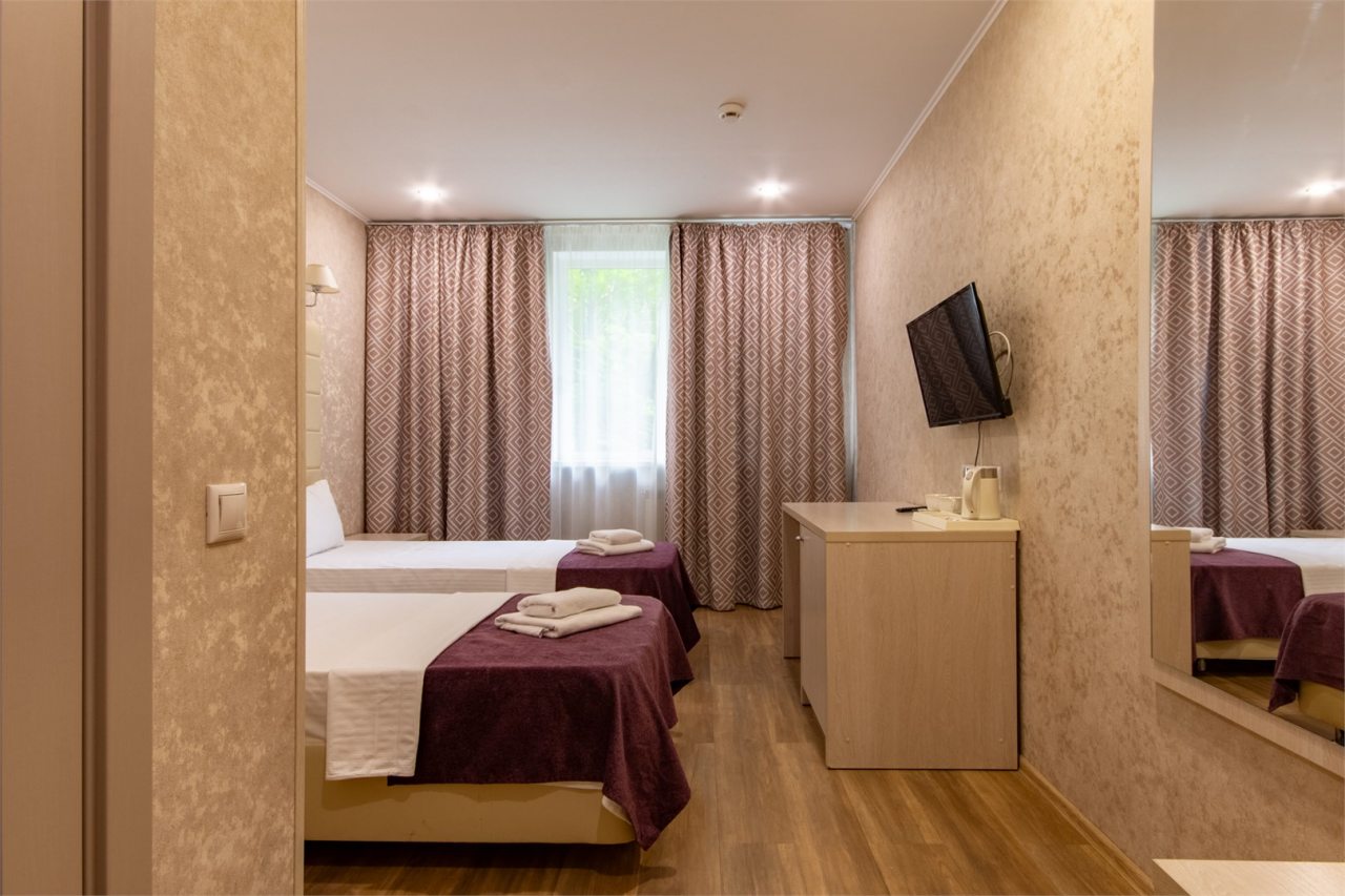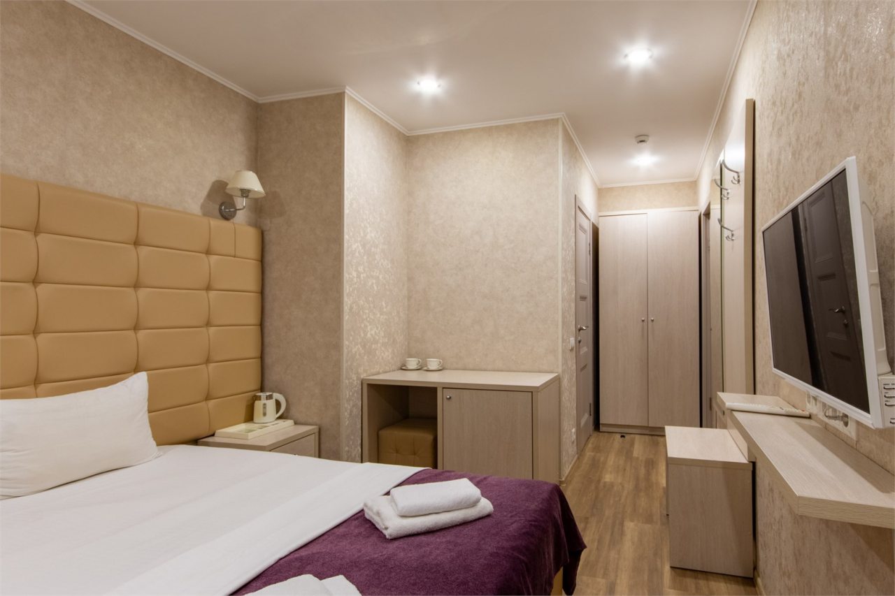 Отличный отель , чистый номер , белоснежное постельное белье . Чайник , фен , тапочки - все в номере ! Сантехника в отличном состоянии . Очень приятный персонал . Рядом продуктовый магазинчик . Чуть дальше пятерочка есть !