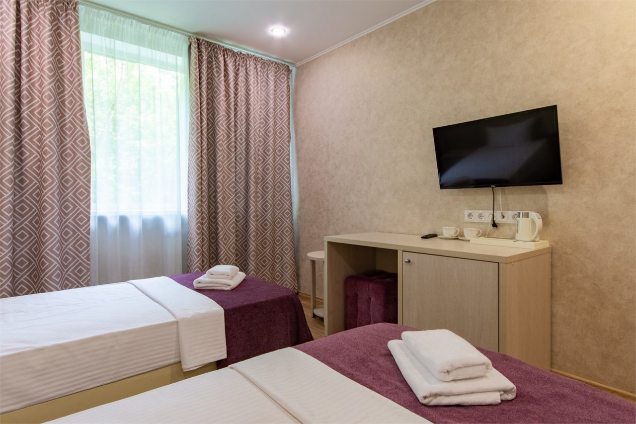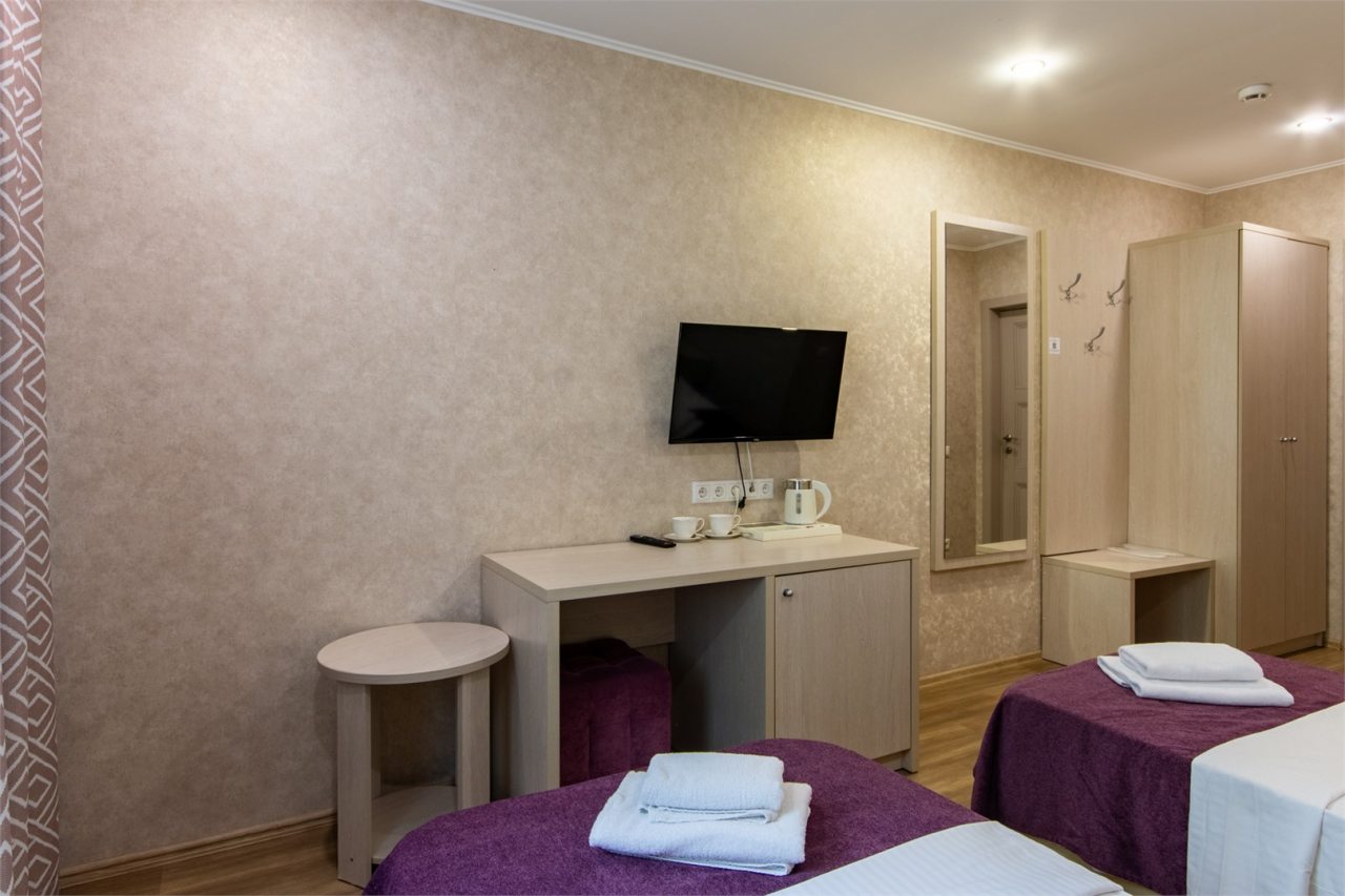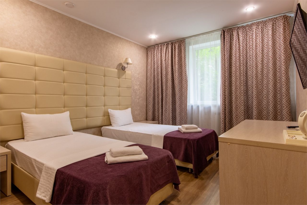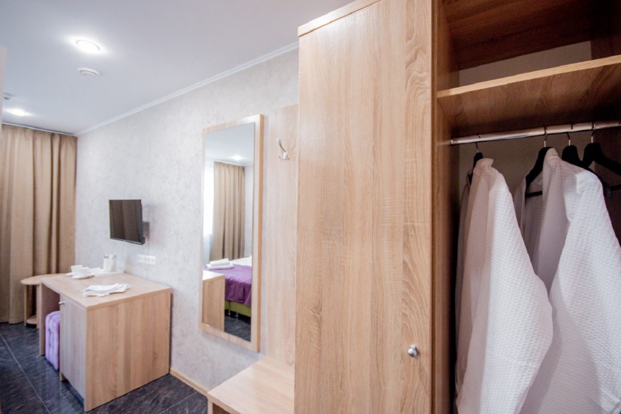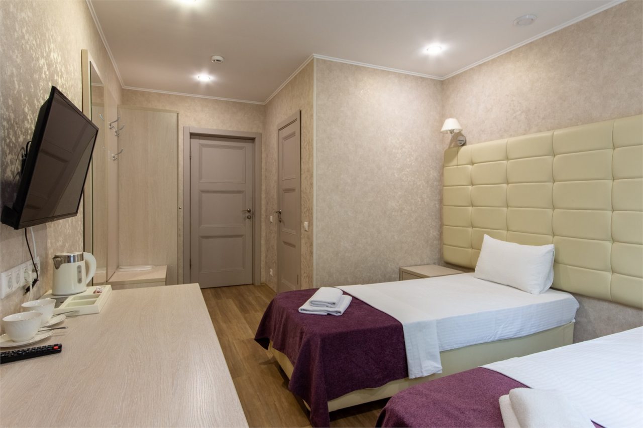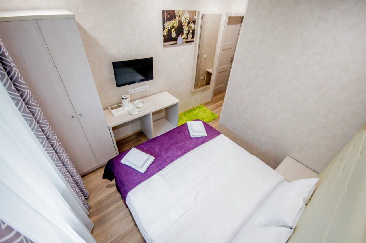 Отличный отель , чистый номер , белоснежное постельное белье . Чайник , фен , тапочки - все в номере ! Сантехника в отличном состоянии . Очень приятный персонал . Рядом продуктовый магазинчик . Чуть дальше пятерочка есть !