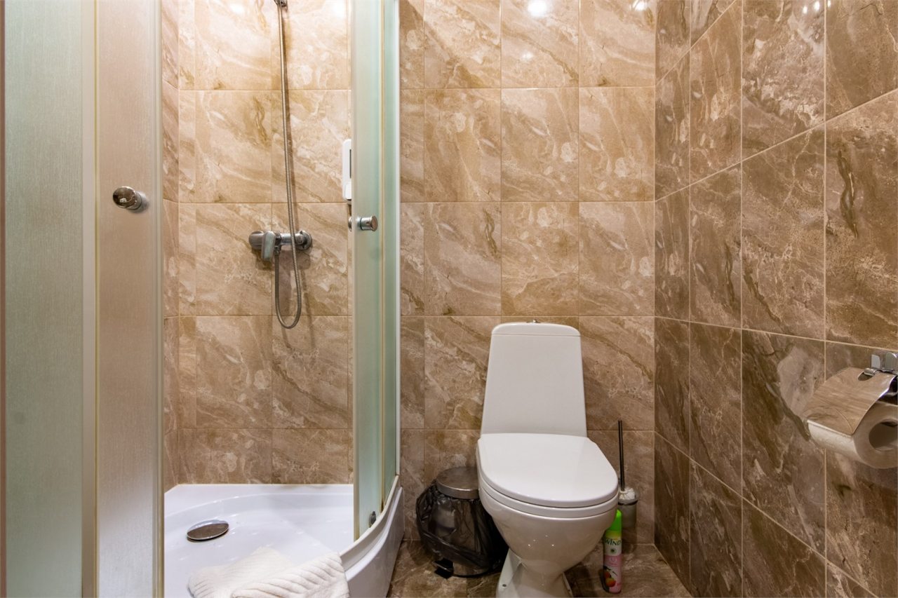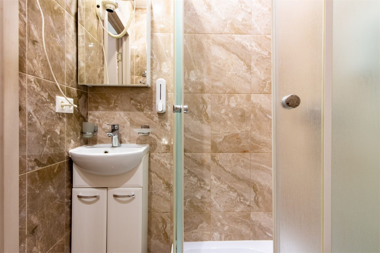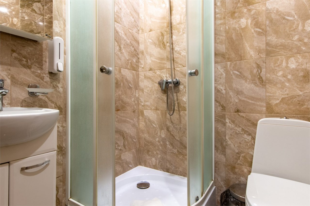 Из недостатков: лейка у душа имеет очень слабый напор и очень долго ждешь горячей воды, номер не убран был