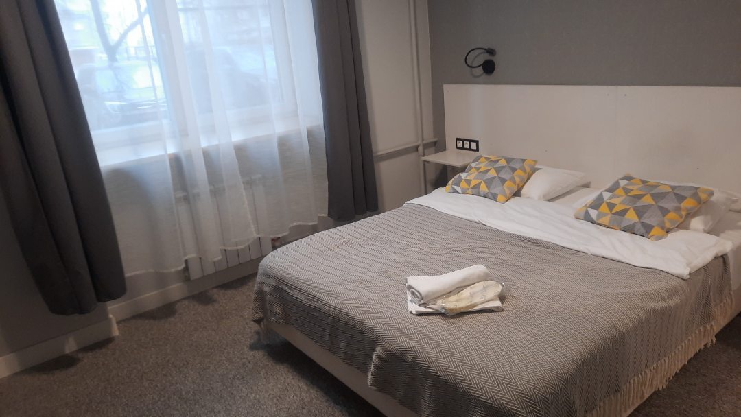 В номерах выполнен современный ремонт в светлых тонах. Для проживания есть все необходимое: спальное место, шкафы, телевизор, Wi-Fi, собственная ванная комната.