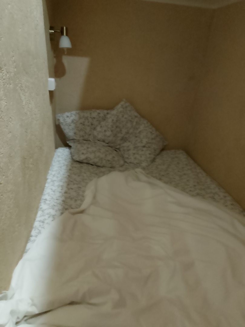Очень понравилось что отдельная комнатка хоть и небольшая, душ, необходимые мыло моющие и фен, телевизор, уборная, мне лично было удобно! Отлично выспалась, постель белоснежная!