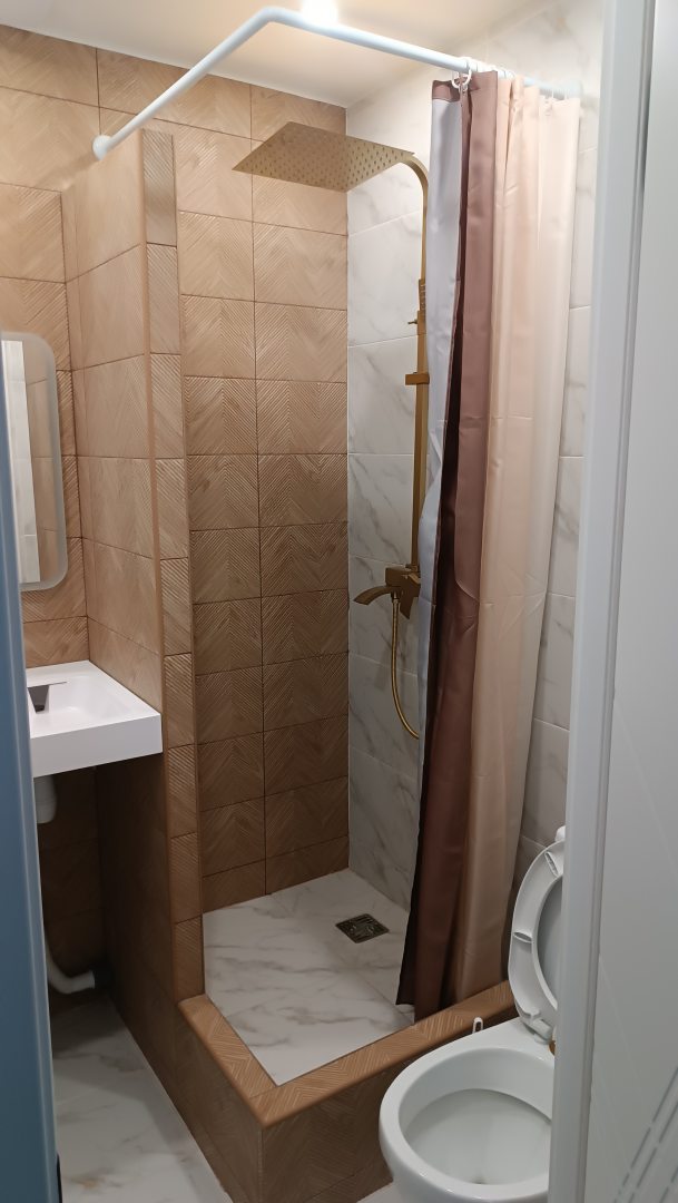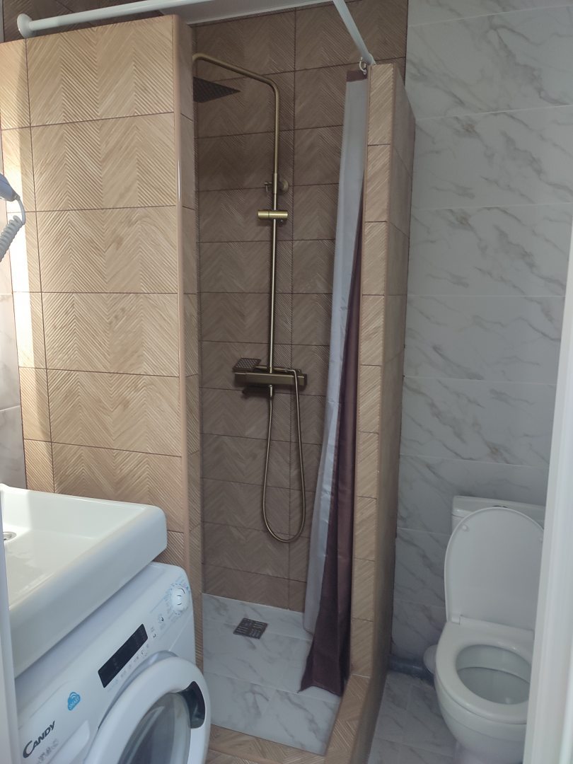 В целом всё понравилось! Расположен в тихом месте,если пешком от метро и МЦК,где то минут 20. Особо впечатлил запах всего нового,новая мебель и чистота! Всё в определенном стиле:золотые приборы,золотой душ- я про цвет),много белого.В общем всё бело- золотое) Кровать очень удобная и большая- мы выспались