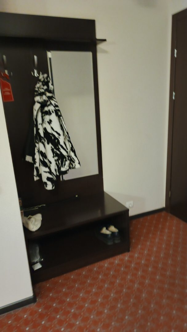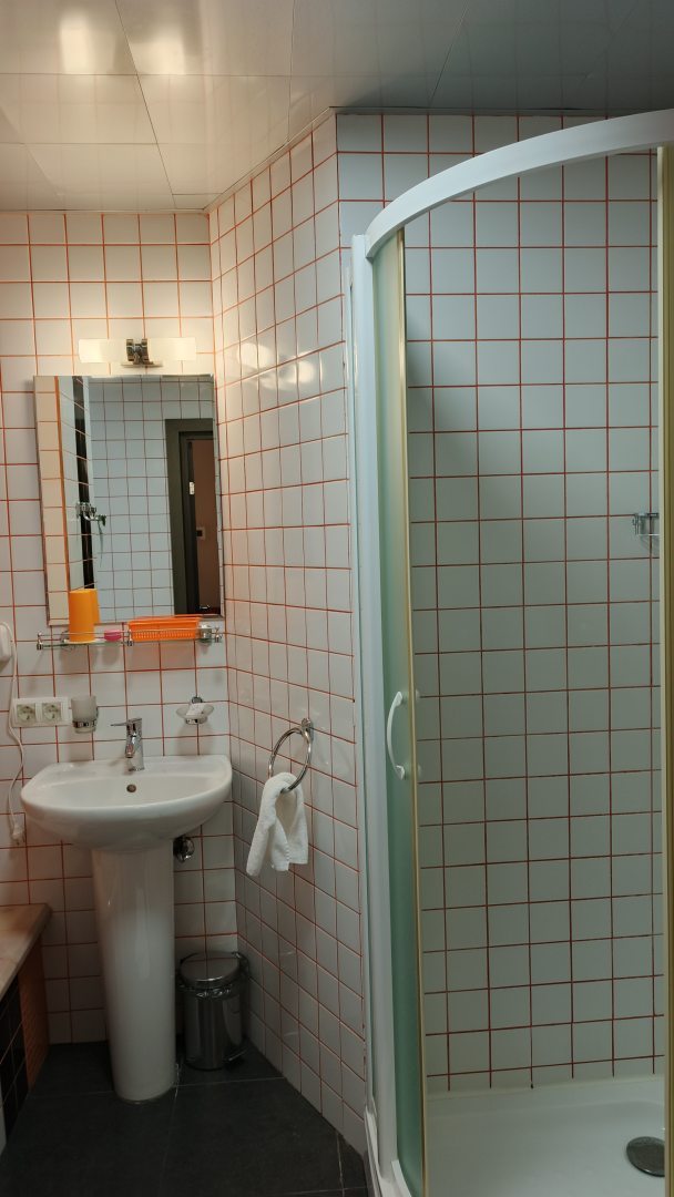 Из недостатков: в ванной нет отопления, только трубы проходят. Поэтому зимой там скорее всего будет холодно, плюс огромное окно. Шумоизоляция не очень хорошая, слышно все, что происходит коридоре. Можно предположить, что и из коридора слышно, что в номере.