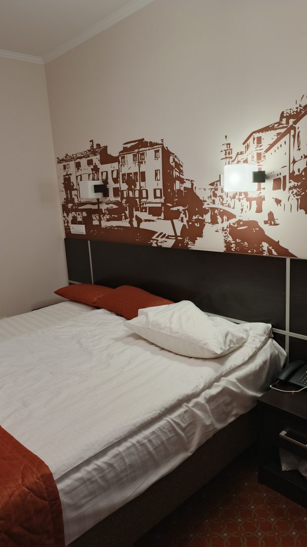 В Москве мы проживали в отеле Елоховский. Он находится рядом с вокзалом, поэтому мы быстро добрались. Заранее проплатили бронь на стандарт повышенного комфорта. Обстановка в нем понравилась, планировка необычная, но это только играет на руку. Большие окна хорошо освещают комнату. На ночь мы их закрывали плотными шторами. Телевизор, интернет есть, все отлично работает.