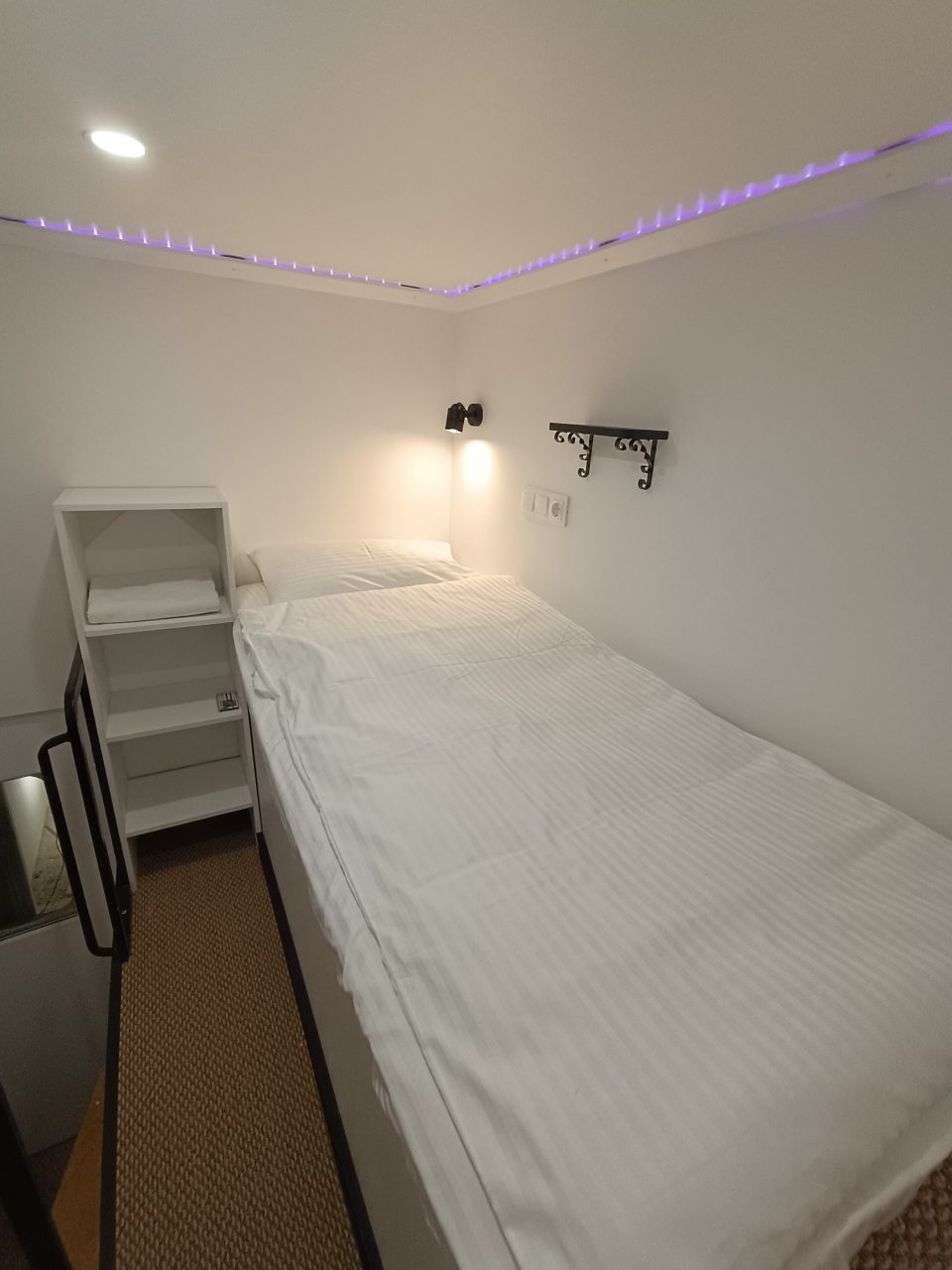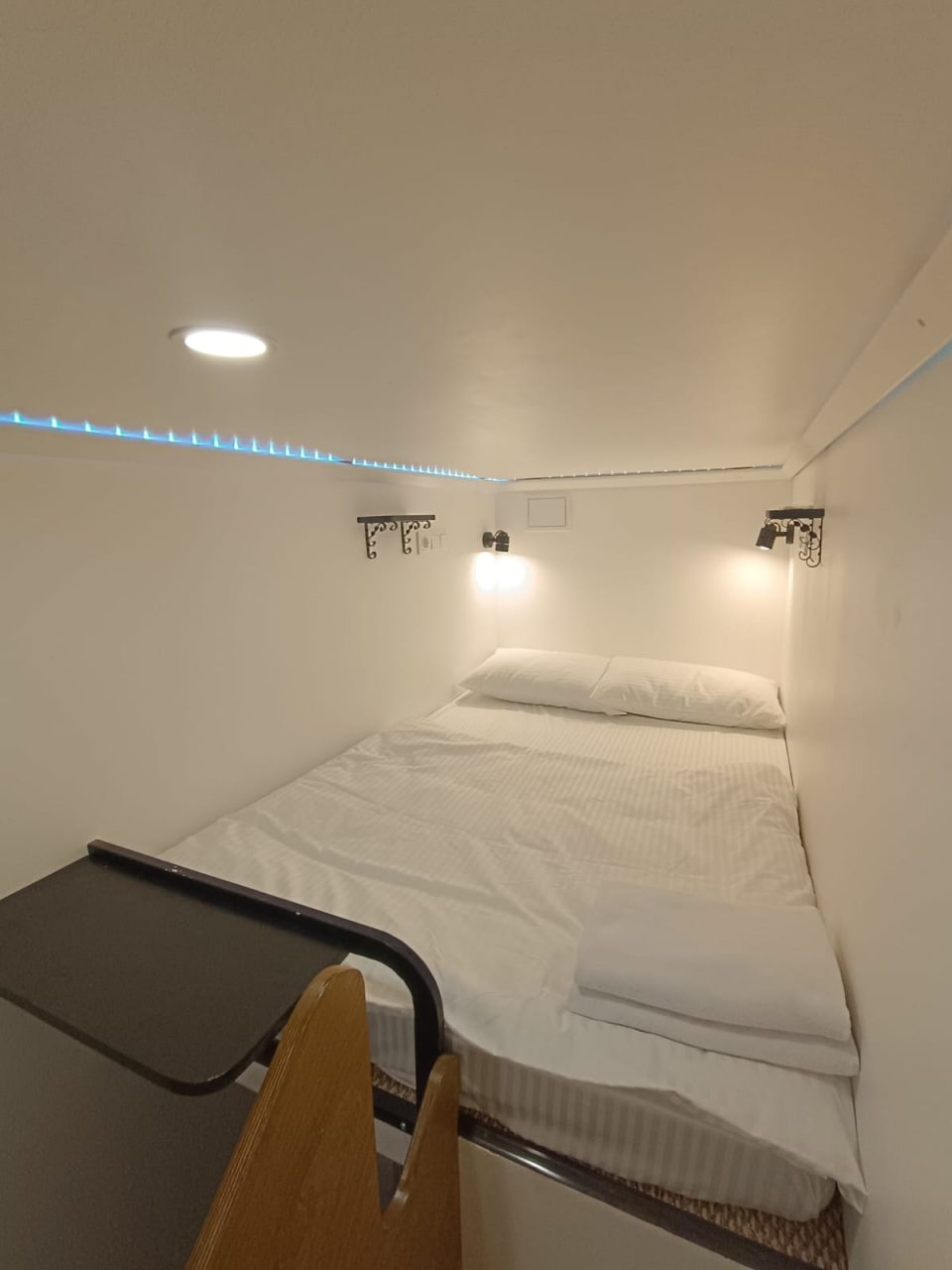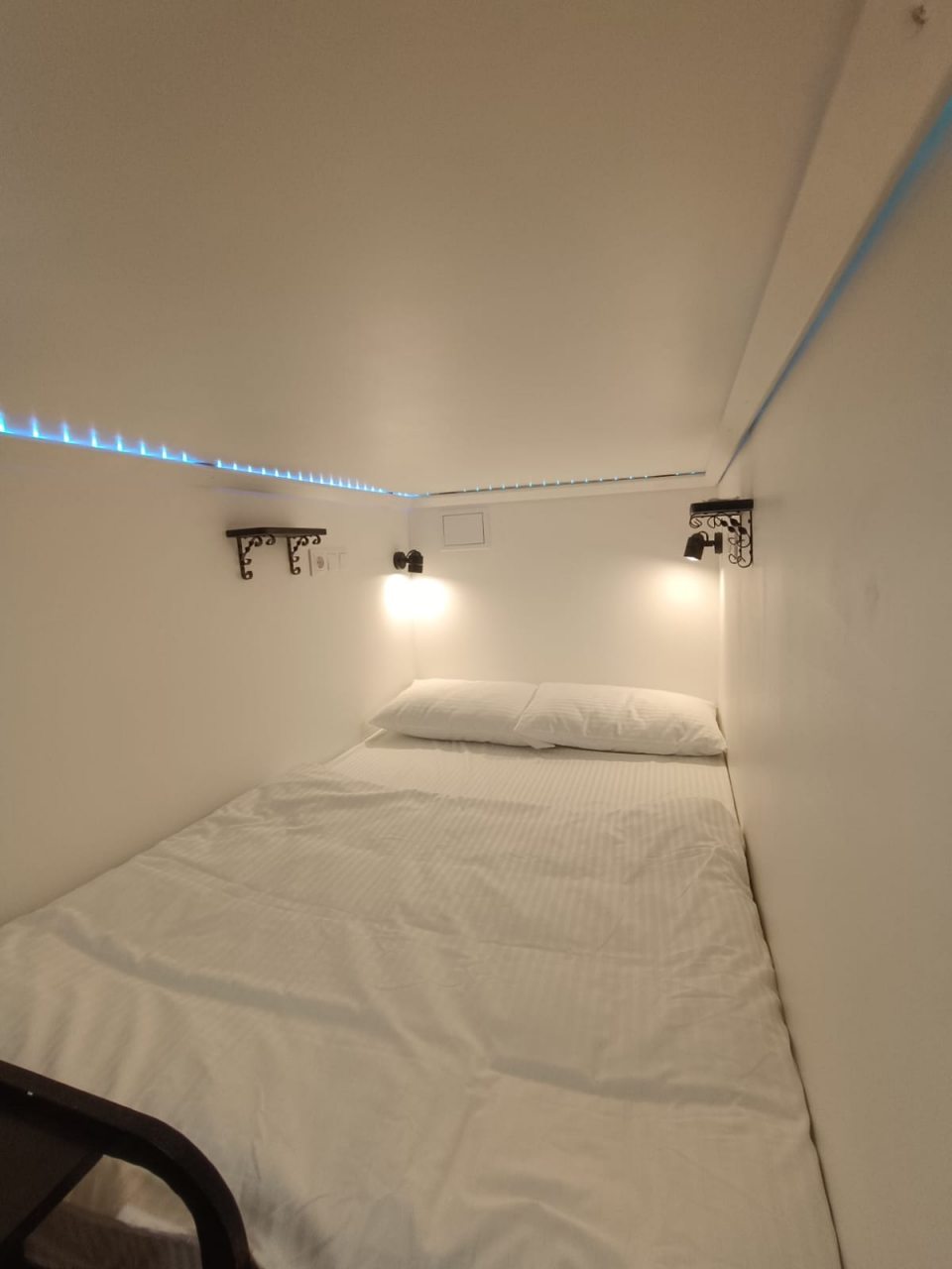 Номера отеля оснащены удобными койко-местами с чистым постельным бельем, доступом в интернет, а также подсветкой. Душ и туалет располагаются на этаже.