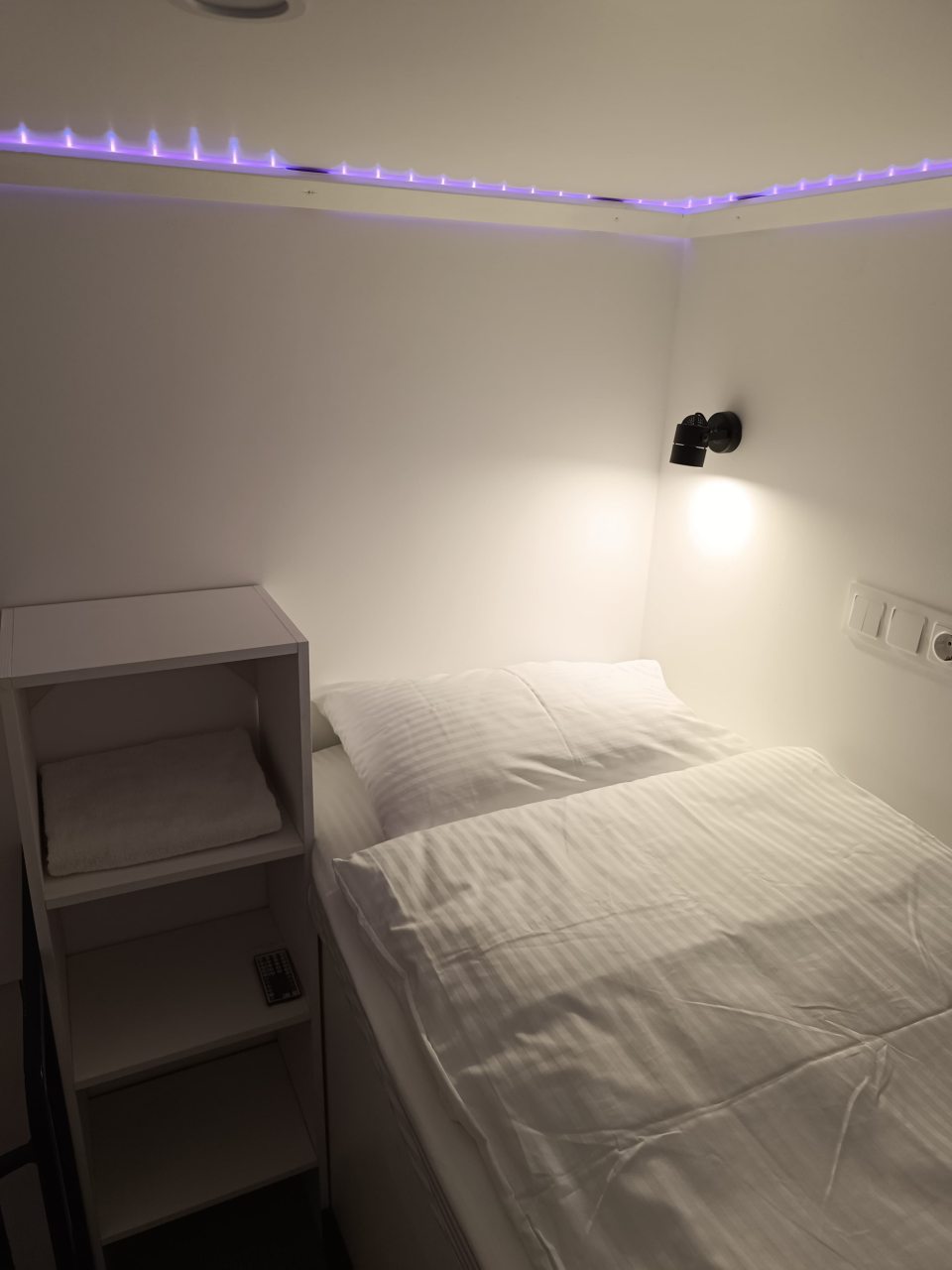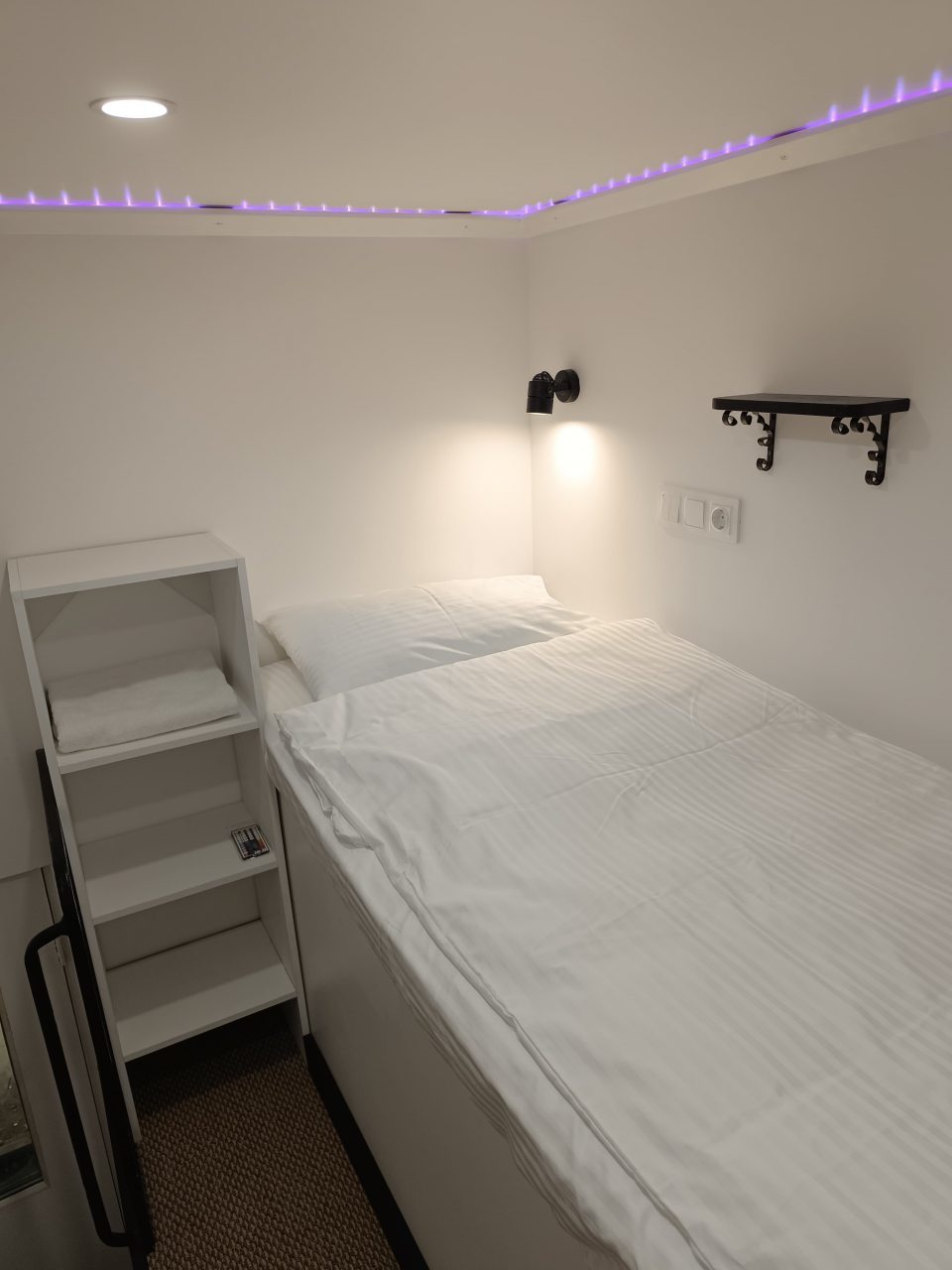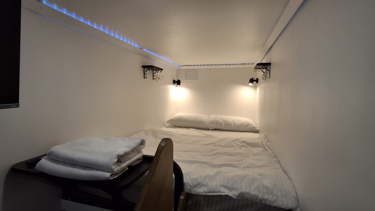 Номера отеля оснащены удобными койко-местами с чистым постельным бельем, доступом в интернет, а также подсветкой. Душ и туалет располагаются на этаже.