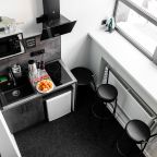 Очень уютное место, советую к проживанию. Были в бюджетном номере, он небольшой, но в нем все есть: микроволновка, чайник, посуда, холодильник, утюг, кондиционер, полотенца и ванные принадлежности. Хочется отметить удобную большую кровать с классным матрасом и теплым легким одеялом, большой телевизор, высокие потолки и хорошую шумоизоляцию (сон никто не беспокоил). В номере большое окно, открывается форточка на проветривание. По прибытию администратор был на месте, что очень удобно, заселились сразу. Метро в шаговой доступности.