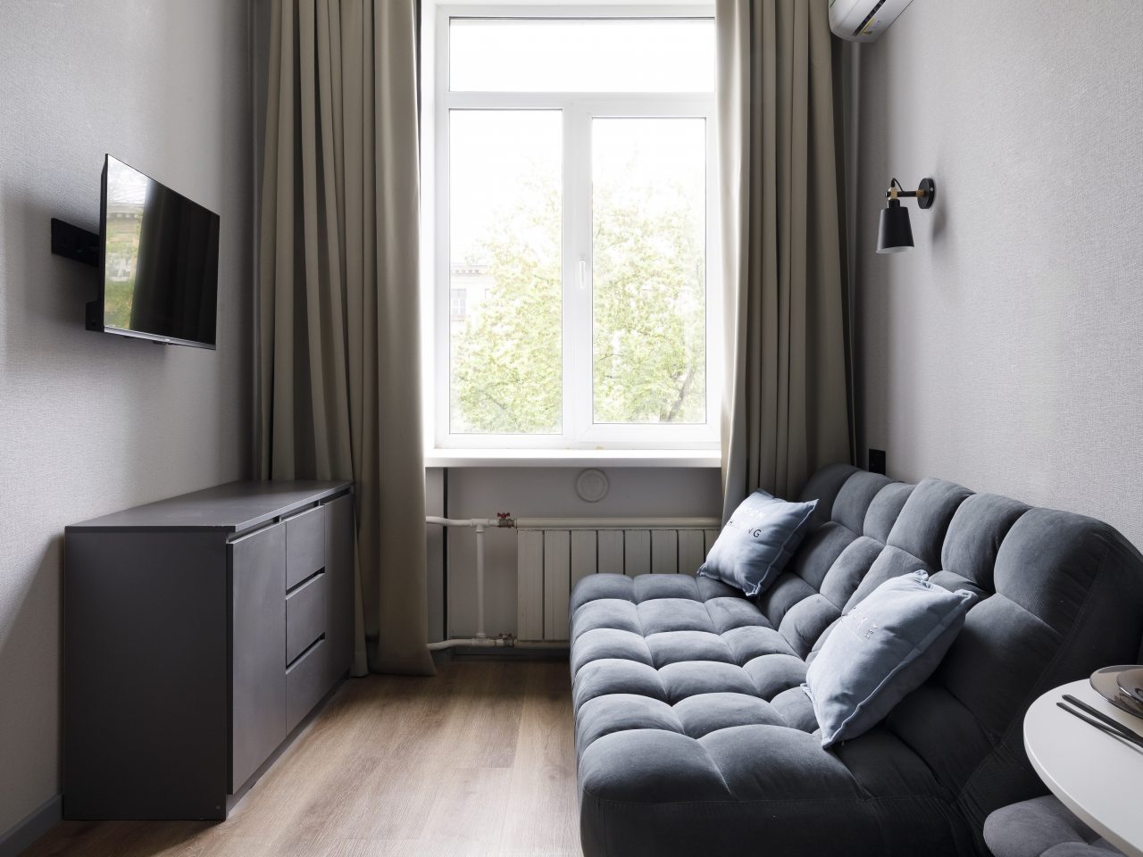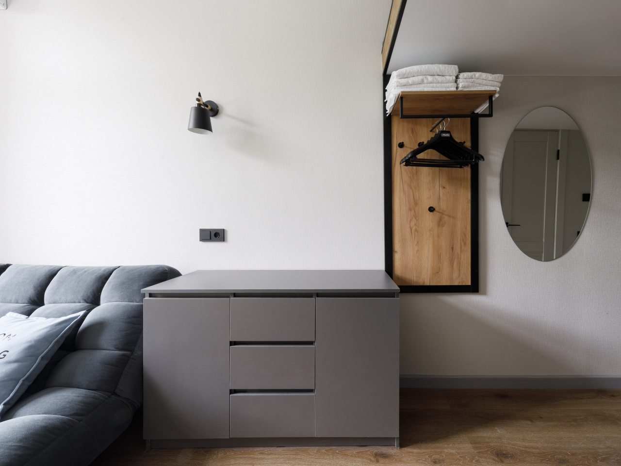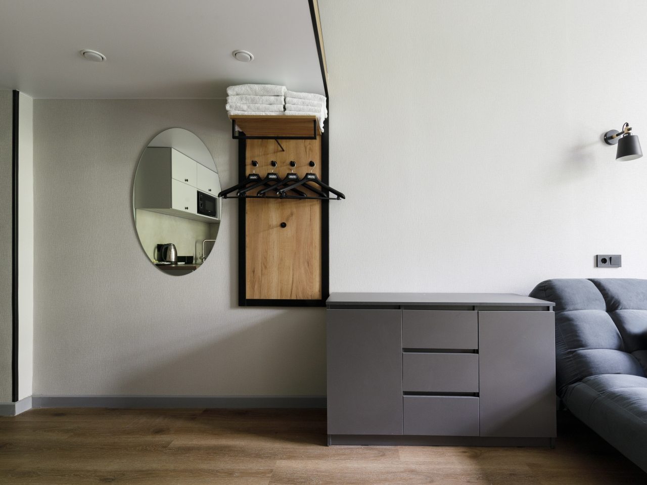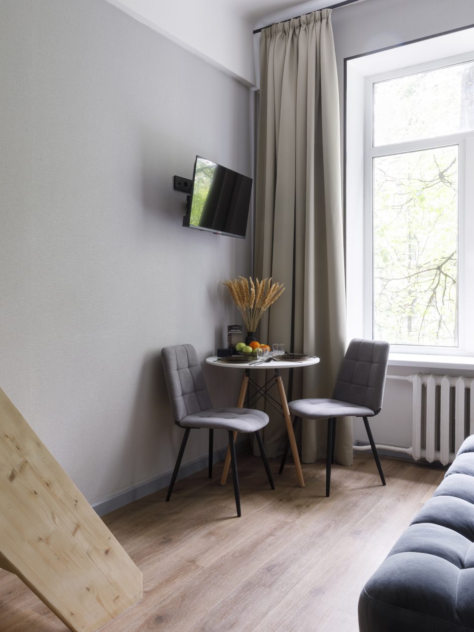 Отель предлагает для размещения удобные номера с современным ремонтом и необходимым набором мебели и техники. Имеется двуспальная кровать с комплектом постельного белья, диван с мягкими подушками, обеденный стол, комод, телевизор. В санузле установлена сантехника.