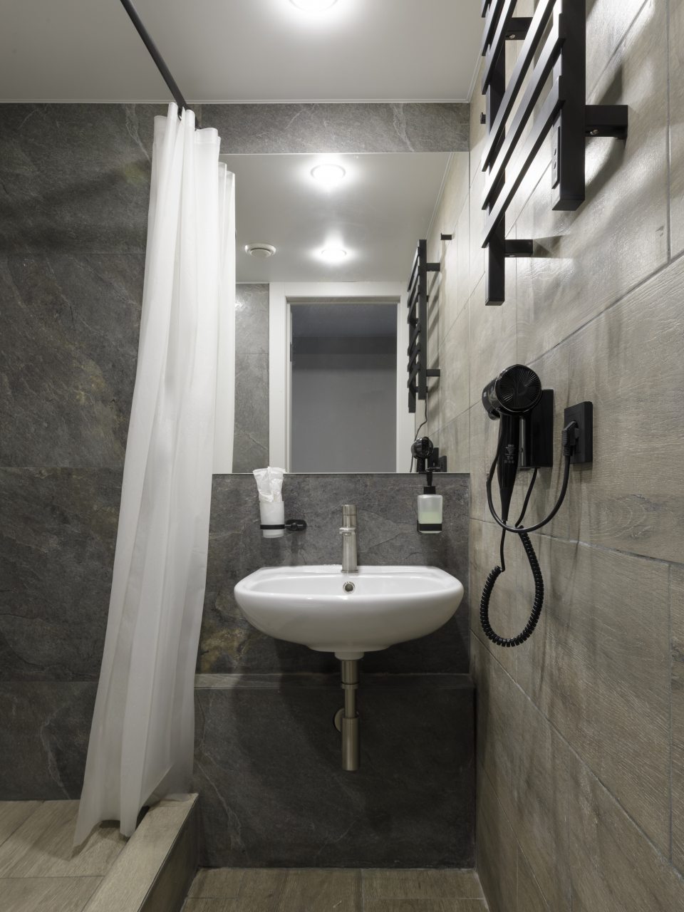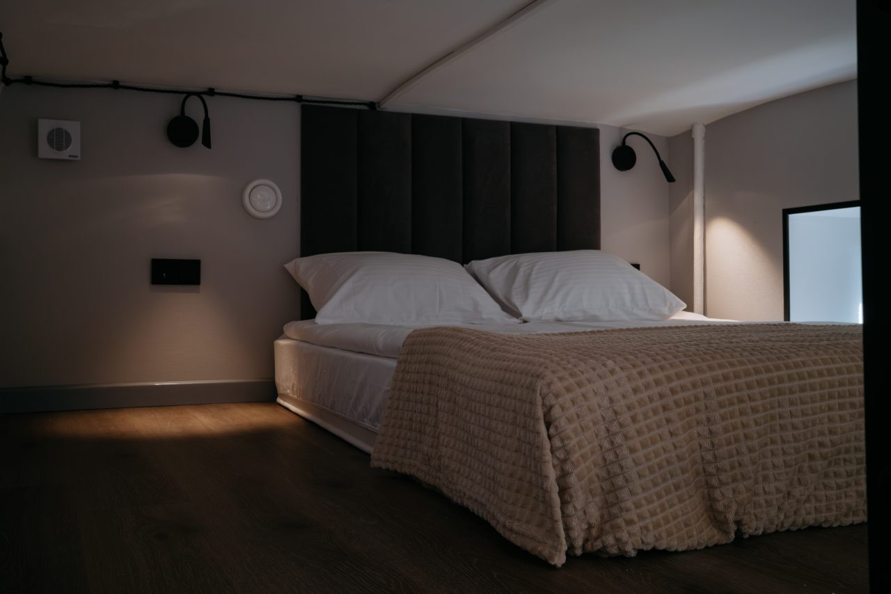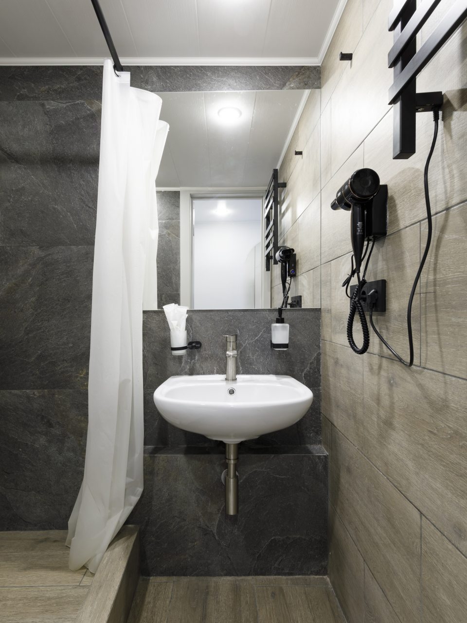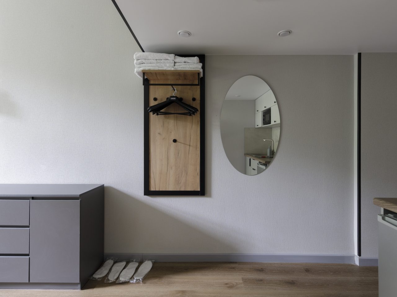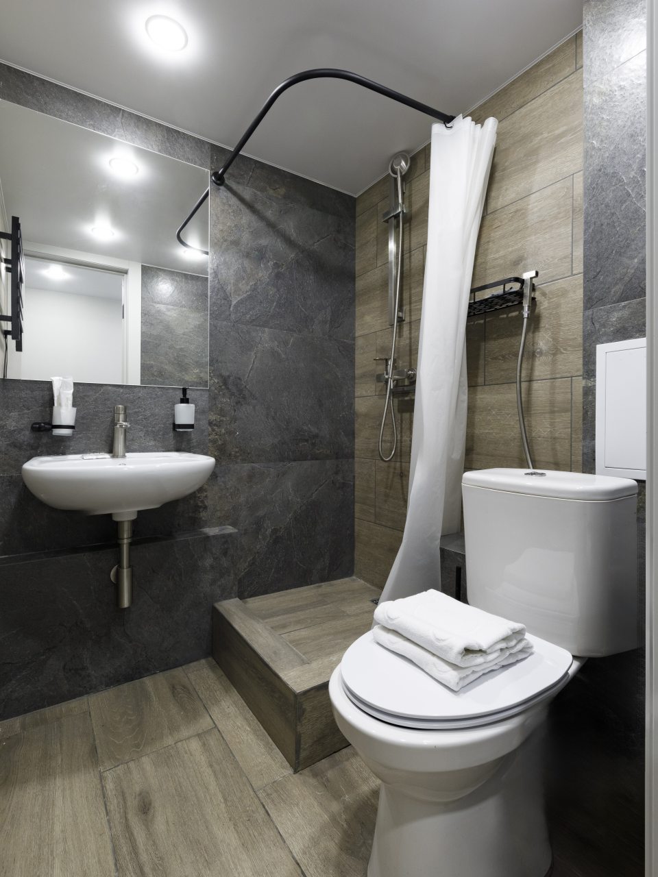 Отель предлагает для размещения удобные номера с современным ремонтом и необходимым набором мебели и техники. Имеется двуспальная кровать с комплектом постельного белья, диван с мягкими подушками, обеденный стол, комод, телевизор. В санузле установлена сантехника.