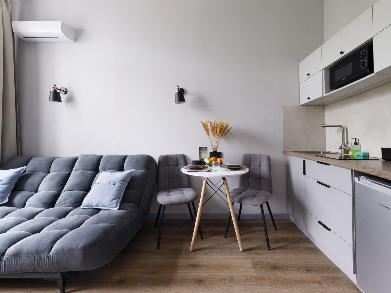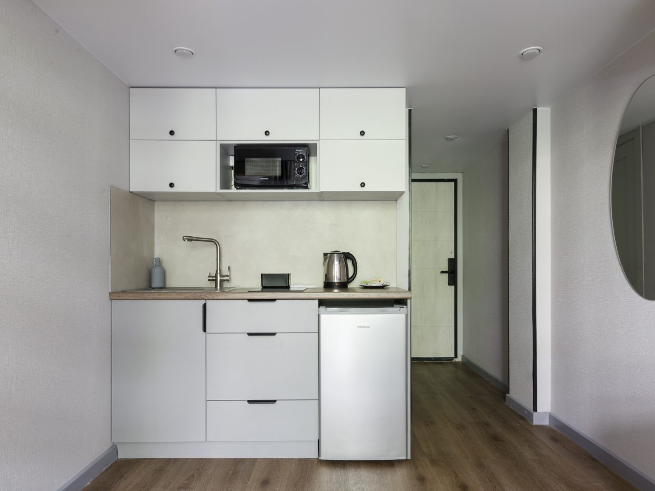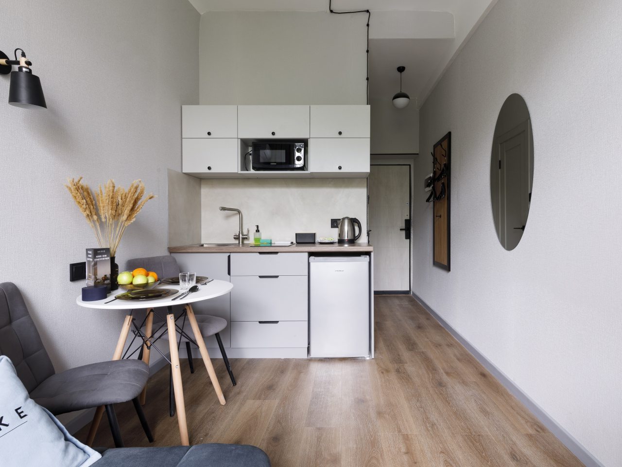 На кухонной зоне располагается набор бытовой техники, благодаря которому легко приготовить любимые блюда. Поблизости есть ресторан «MiMi», кофейня «Мировая Чашка» и продуктовый магазин «Пятёрочка».