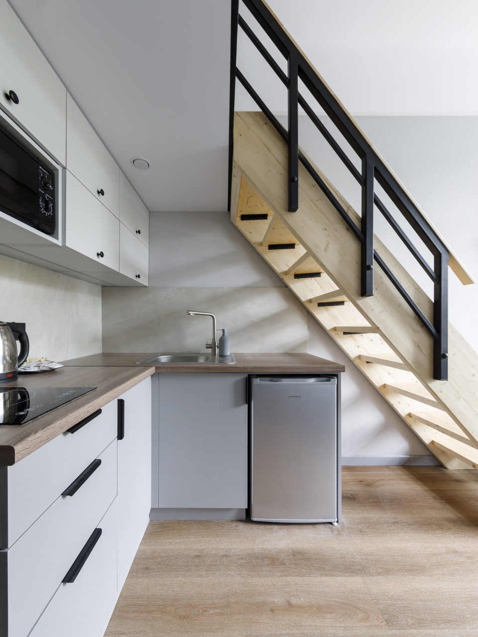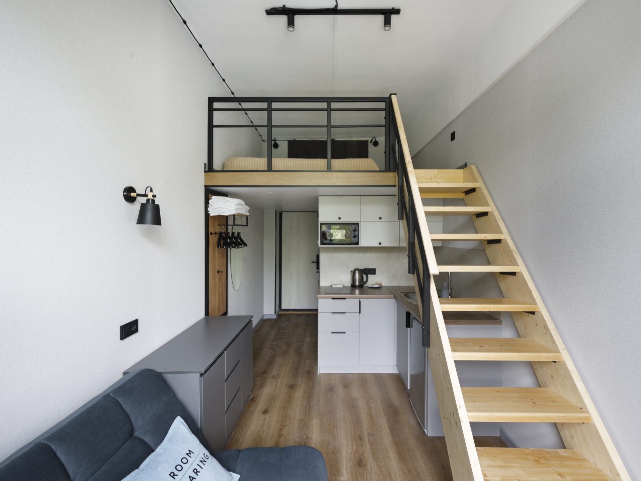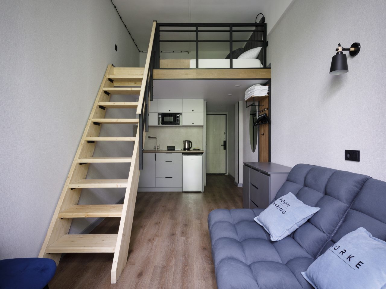 На кухонной зоне располагается набор бытовой техники, благодаря которому легко приготовить любимые блюда. Поблизости есть ресторан «MiMi», кофейня «Мировая Чашка» и продуктовый магазин «Пятёрочка».
