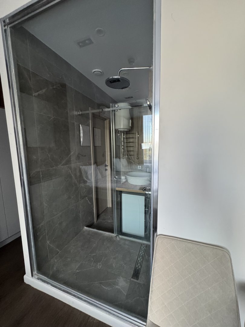 Из недостатков: прозрачная стена ванной на любителя. Попросили дополнительное одеяло-не предоставили. Горячей воды хватает в душе на 5 мин, потом только снова ждать нагрев-это значительный минус.