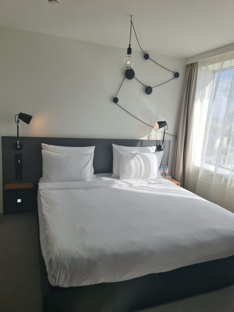 Номер на 10-м этаже порадовал шикарным видом из окна! Кровать невероятно удобная, подушки мягкие, спала лучше, чем дома. Белоснежные простыни и полотенца — отдельный плюс, всё идеально чистое. В номере уютно, ничего лишнего, даже подогрев пола в ванной комнате- чувствовала себя очень комфортно.