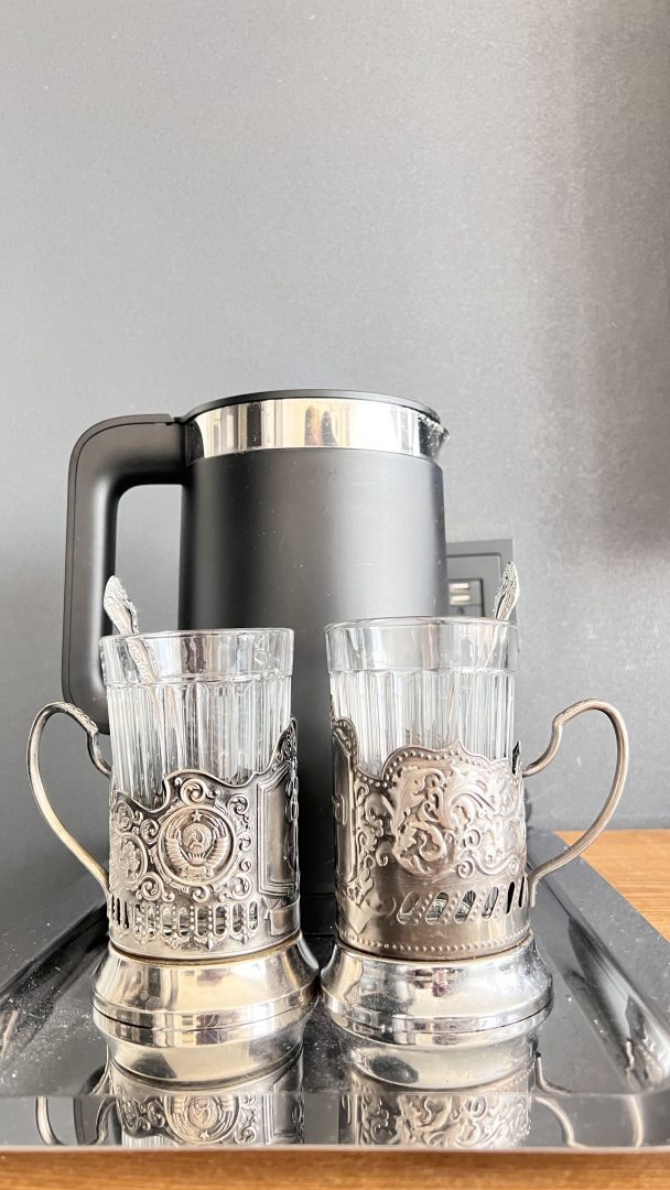 Отдельное удовольствие доставил чай в номере: есть всё необходимое для приготовления, на этаже у лифта — кулер с горячей и холодной водой, а больше всего понравились стаканы в подстаканниках «из советского прошлого» — невероятно атмосферно!