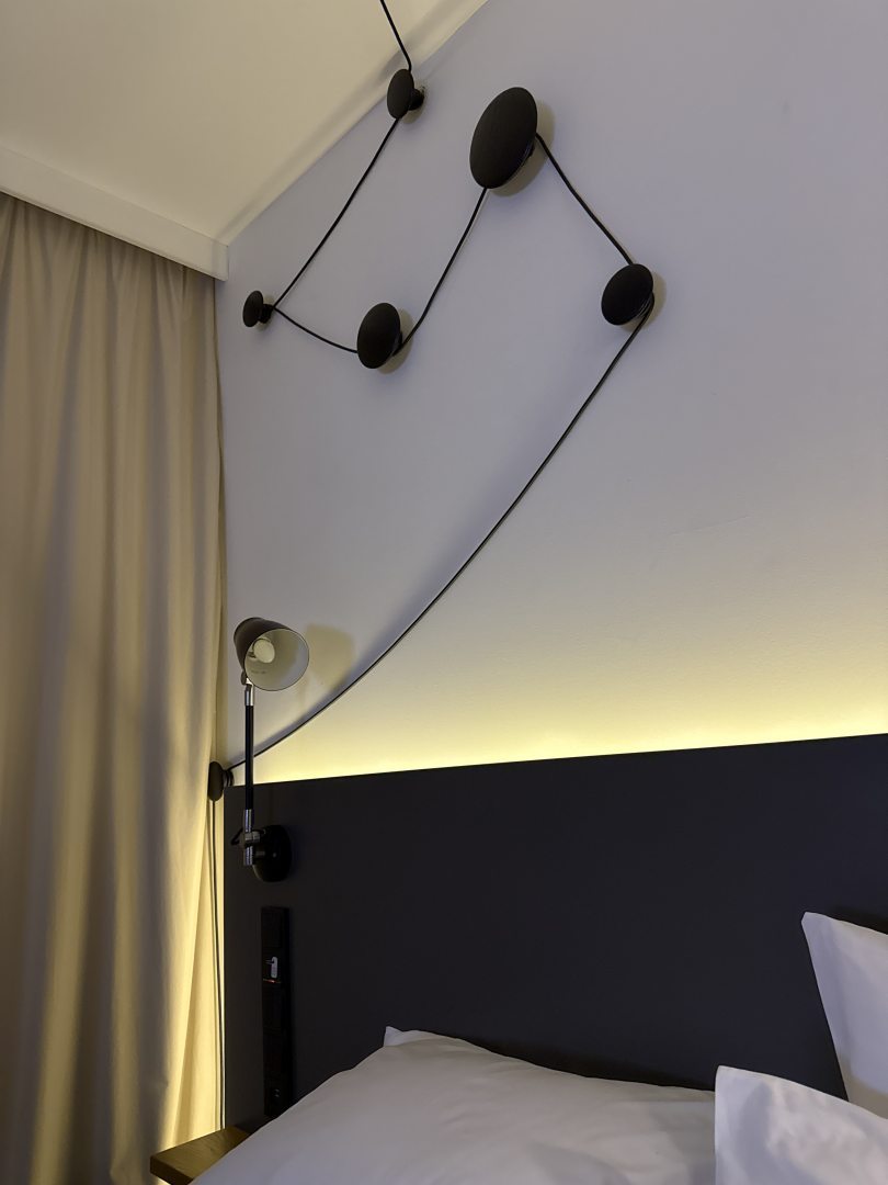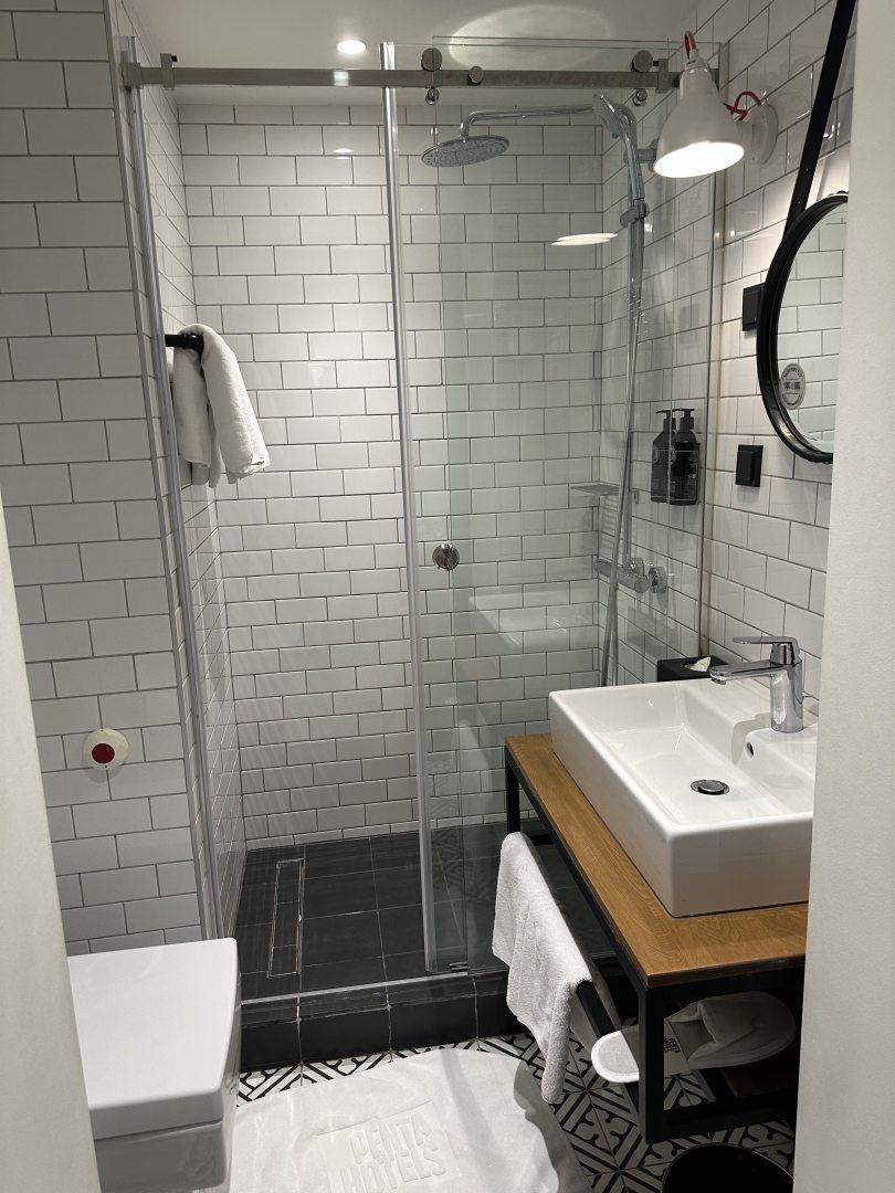 Интересный отель по дизайну. Понравился номер. Он небольшой, но с огромным окном, практически во всю стену! Учитывая проживание на 8м этаже, вид был прекрасным, не хотелось на ночь задвигать шторы. В номере есть чайник и чайно-кофейный набор, холодильник, фен, тапочки. Халат (белый и пушистый) по запросу. Кровать удобная, белье белое и незамученное. Такие же полотенца. В номере очень чисто. Это приятно. Персонал отзывчивый. Завтрак чудесный! Шведский стол с хорошим выбором, повар готовит яичницуомлет, фрукты, даже есть шампанское. Обязательно рассмотрю этот отель для следующего приезда! P.S. фото на сайте соответсвуют действительности.