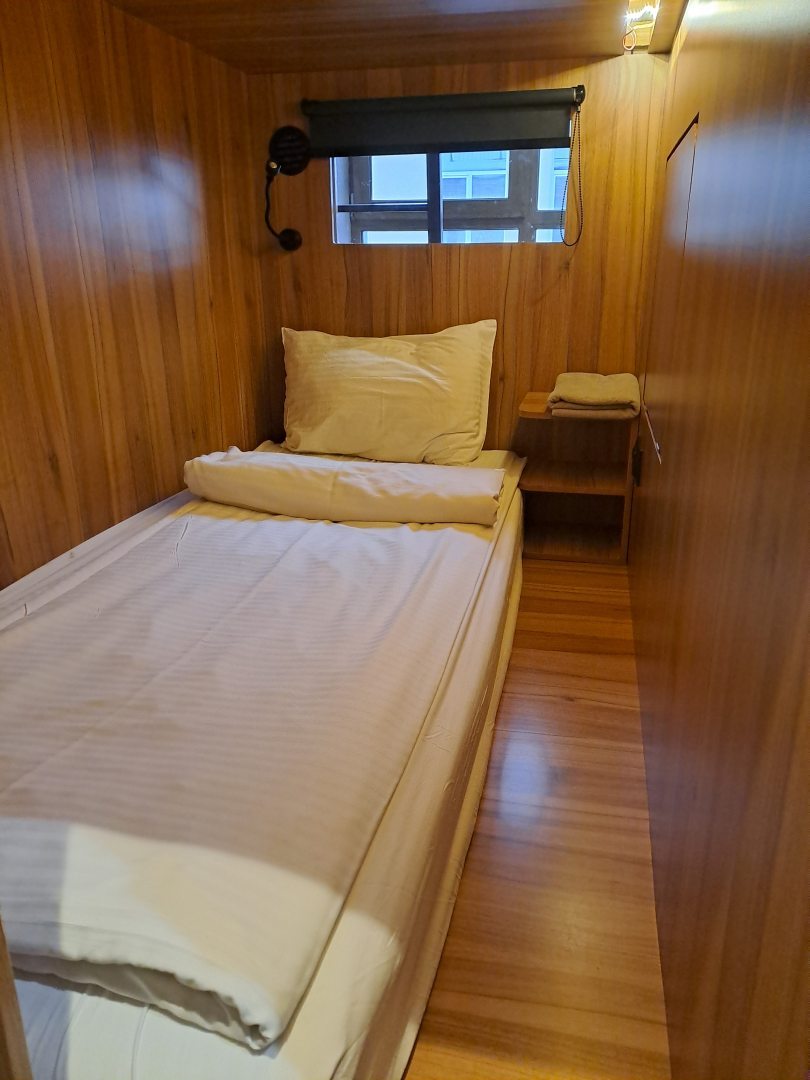 Жила в женской комнате. Спокойно, чисто, без посторонних запахов. Персонал вежливый, всегда поможет, если возникли вопросы. Свой бокс закрывается на персональный замок. Есть большое хранение для чемодана. Тапочки можно у них преобрести. Душевые и туалеты чистые, не страшно молиться на унитаз. В душ ходила босиком, было чисто. Постельное белье как в хороших гостиницах. Матрас и подушка удобные, видно что не самые дешевые.