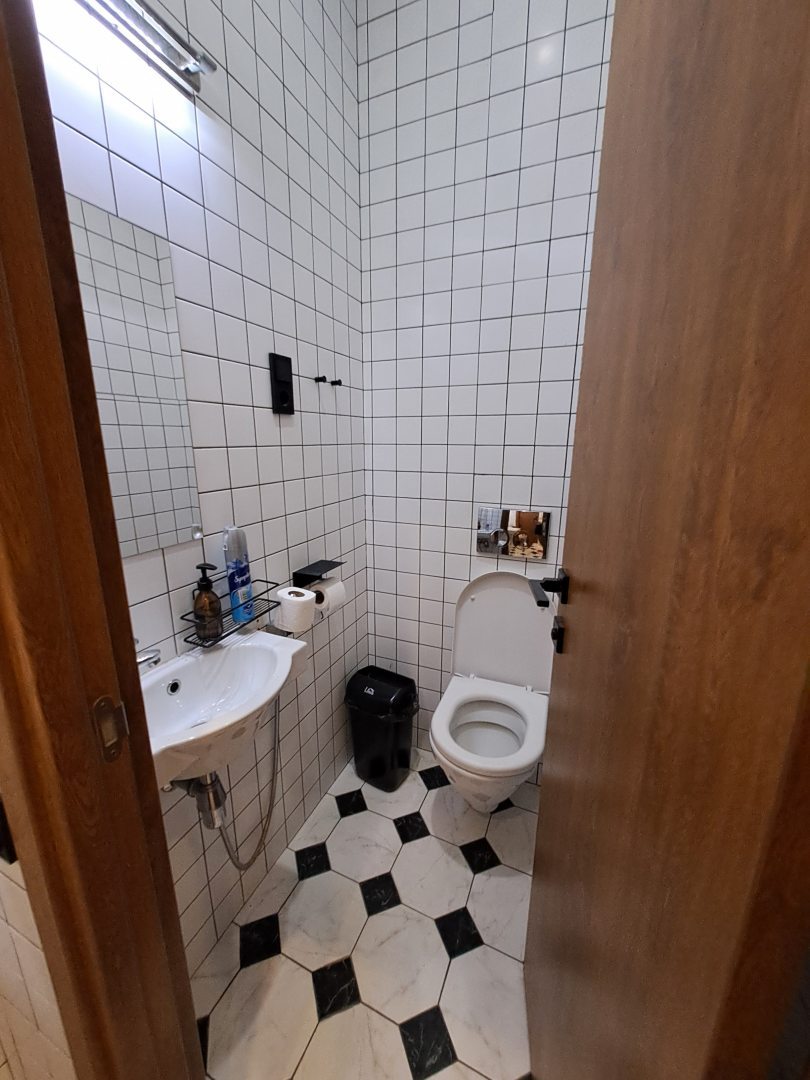 Нигде нет очередей и можно спокойно привести себя в порядок. Есть общее пространство кухни и отдыха с tv, компьтерный уголок. До 14ч предоставляется бесплатно чай, кофе.