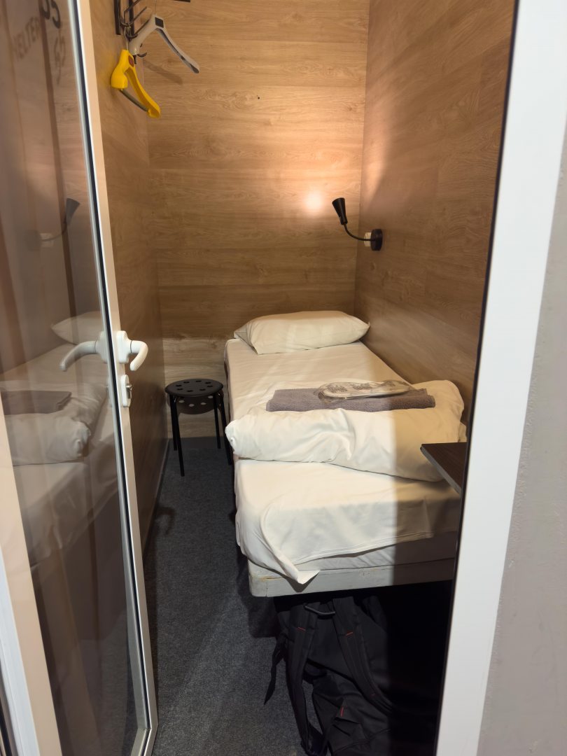 Понравился однозначно! Я была одна, очень удобная спаленка. Всё, что нужно есть. Чисто везде, на кухне всегда кипяток, туалеты свободны их много, постель белоснежная,а это очень важно. Метро в шаговой доступности, магазин Дикси напротив. Приеду сюда в след раз. Спасибо!