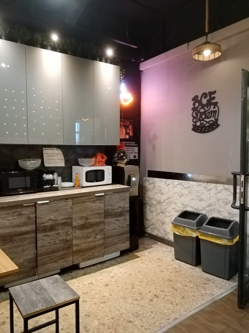 На территории отеля работает кафе, где каждый сможет перекусить, а кофеманы отведать вкусный кофе. Также в общем доступе небольшая кухня с микроволновой печью и посудой.