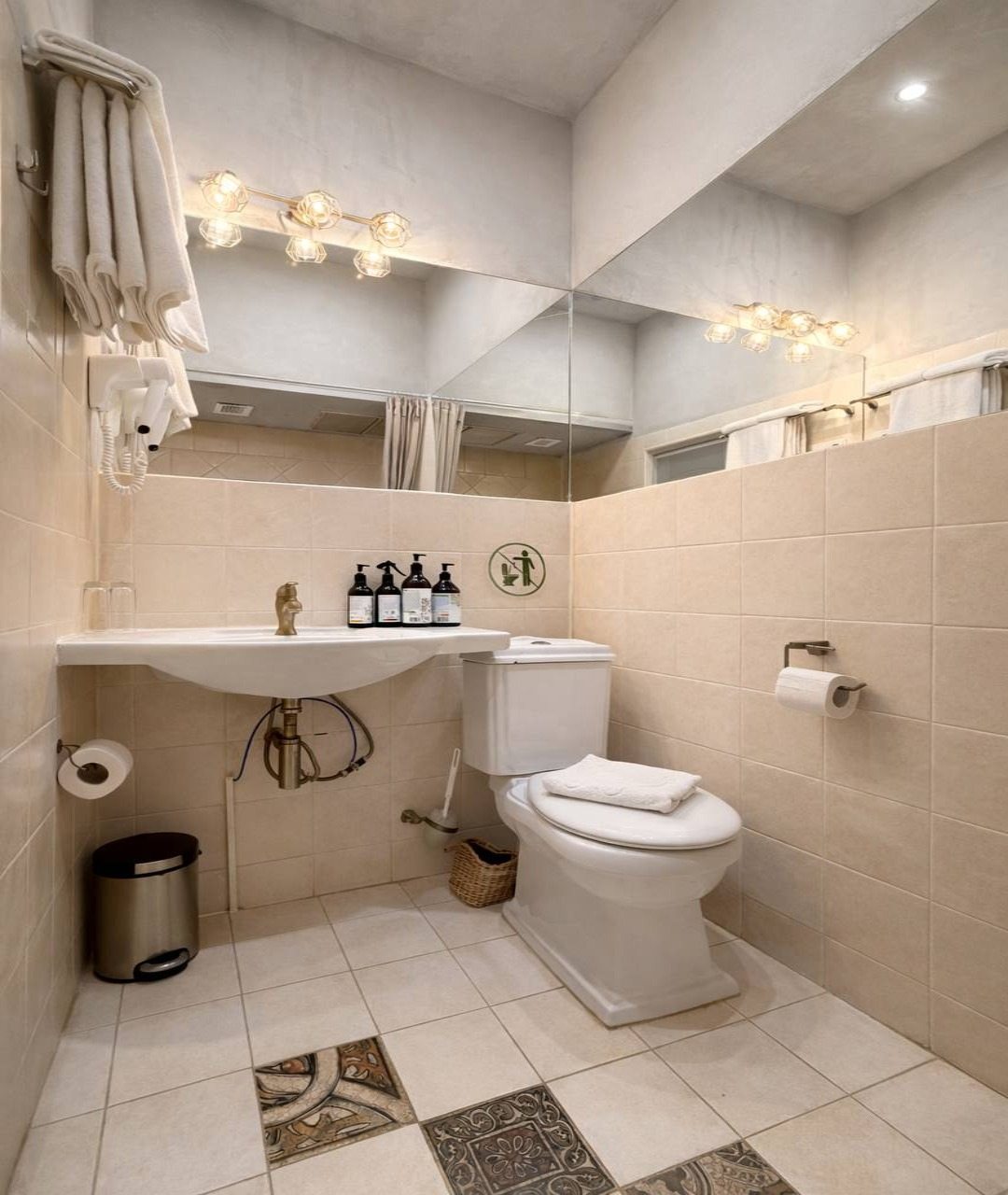 Отличное расположение в центре. В номере было чисто: полы без ковровых покрытий, белье белоснежное, кровати удобные с кучей подушек. В ванной комнате пол с подогревом! Мыло, шампунь, гель для душа марки synergetic. Завтраки на выбор пять вариантов. Заказали на 9 утра. Принесли в номер раньше, что очень приятно. На recepshen кофемашина. Сиропы двух видов на выбор. Кофе вкусный получается.
