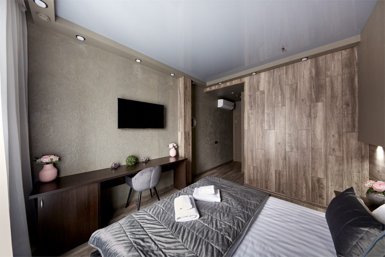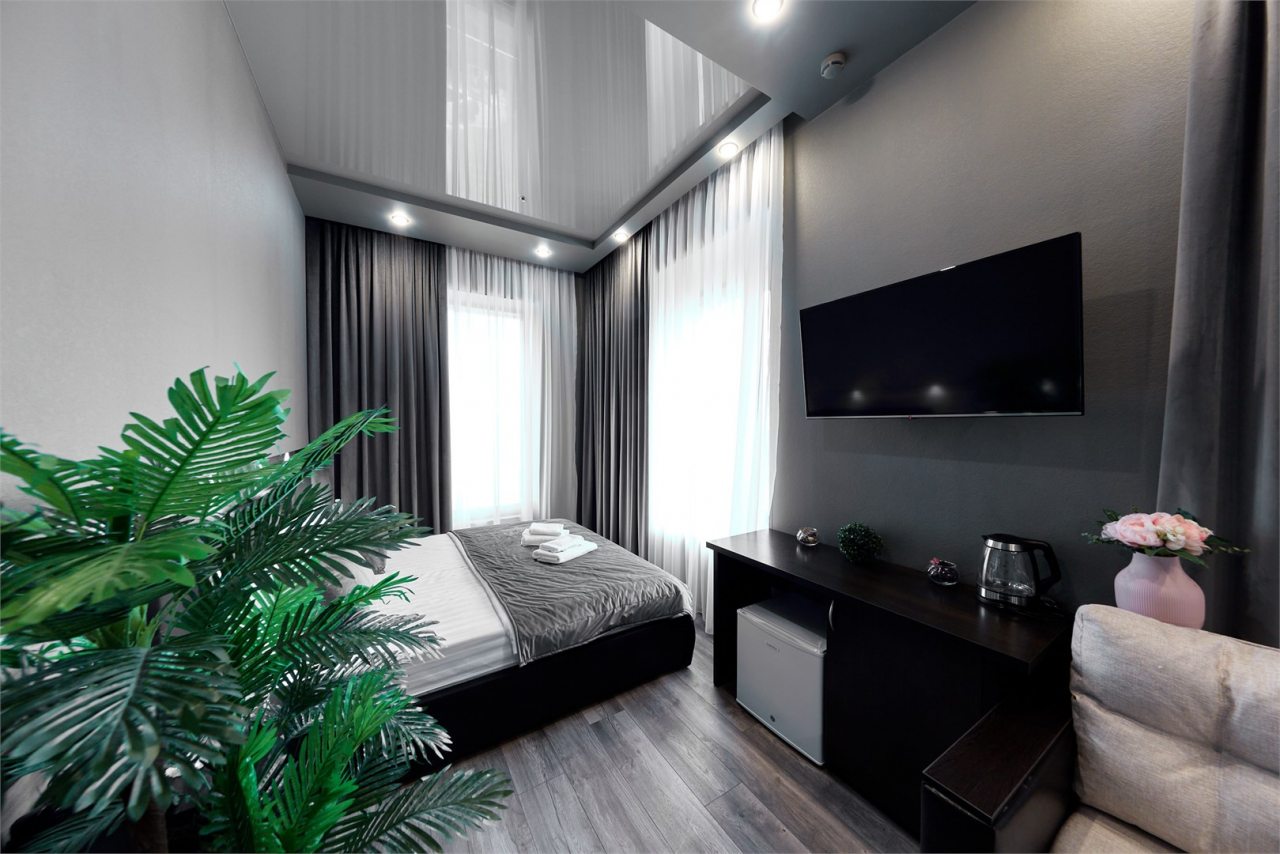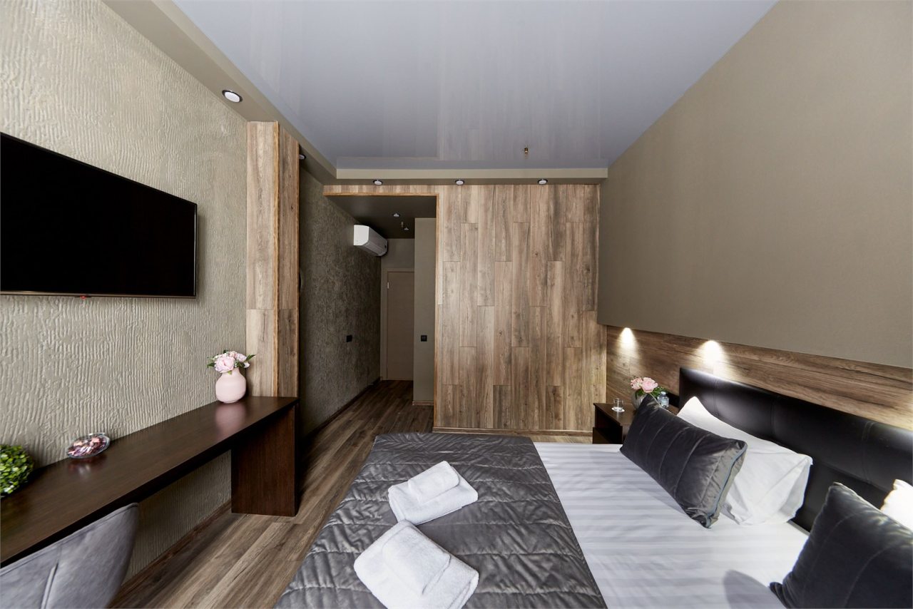 Гости могут разместиться в одном из 21 номеров, которые оснащены двуспальной кроватью, прикроватной мебелью, чайником, кондиционером, лампами для вечернего чтения и др. Доступна точка wi-fi и ЖК-телевизор. Санузел укомплектован современной сантехникой, феном, гигиеническим душем, средствами личной гигиены.