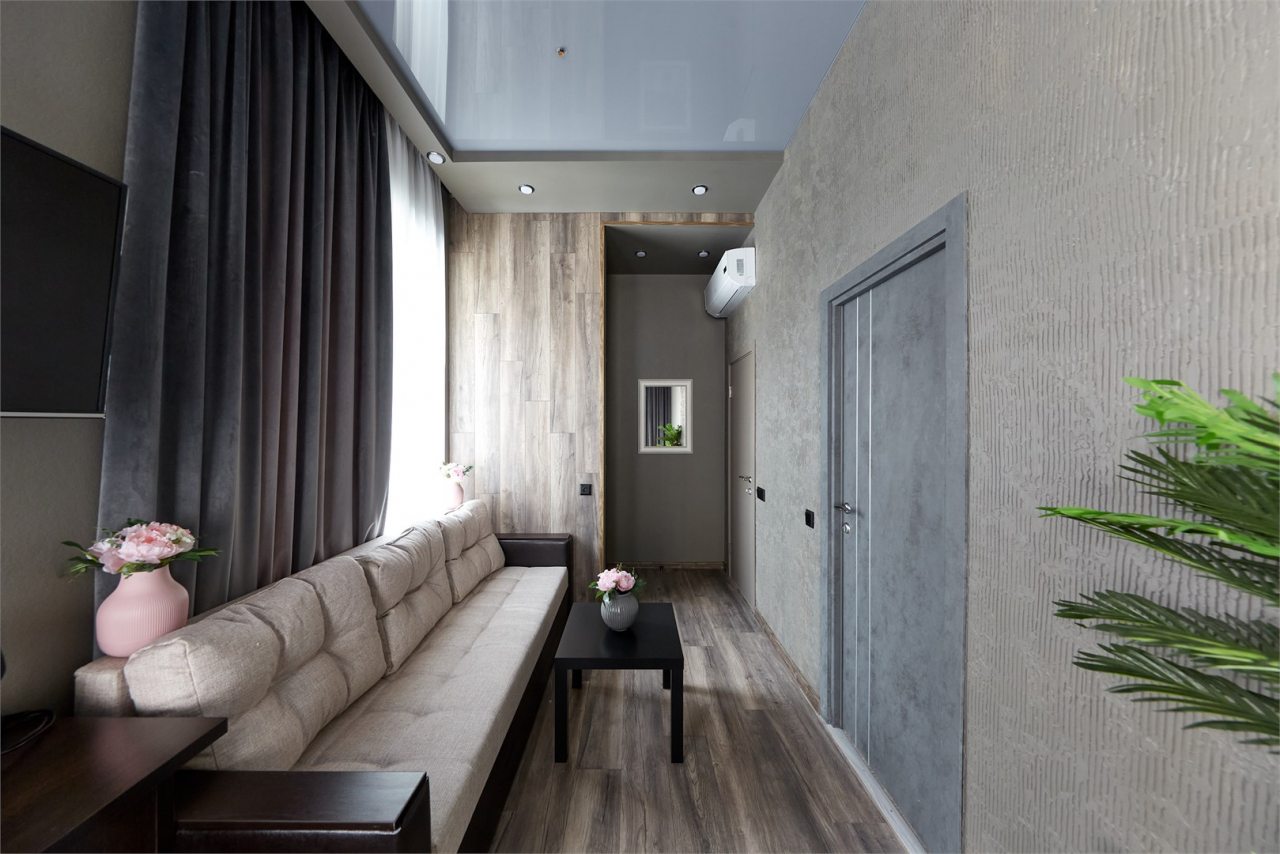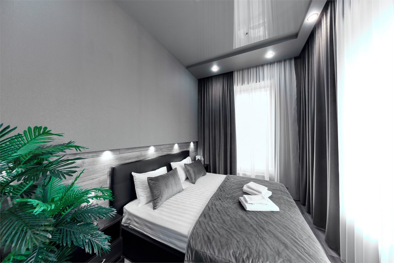Из недостатков: здравствуйте! Это не отель! Администратор вышла заспанная, кое- как нашли свой номер, дверь входная не закрывается, лампочек не хватает ни в комнате, ни в ванной, ерш от унитаза антисанитарный, туалетная бумага - остаток рулона, за тумбочкой волосымусор, окна грязные, тюль оторванаотсутствует, чайник грязный ржавое дно, висят шнуры от телевизора гроздьями, постельное белье с жёлтыми пятнами, полотенца серые. Номер был 312 на 3 этаже.