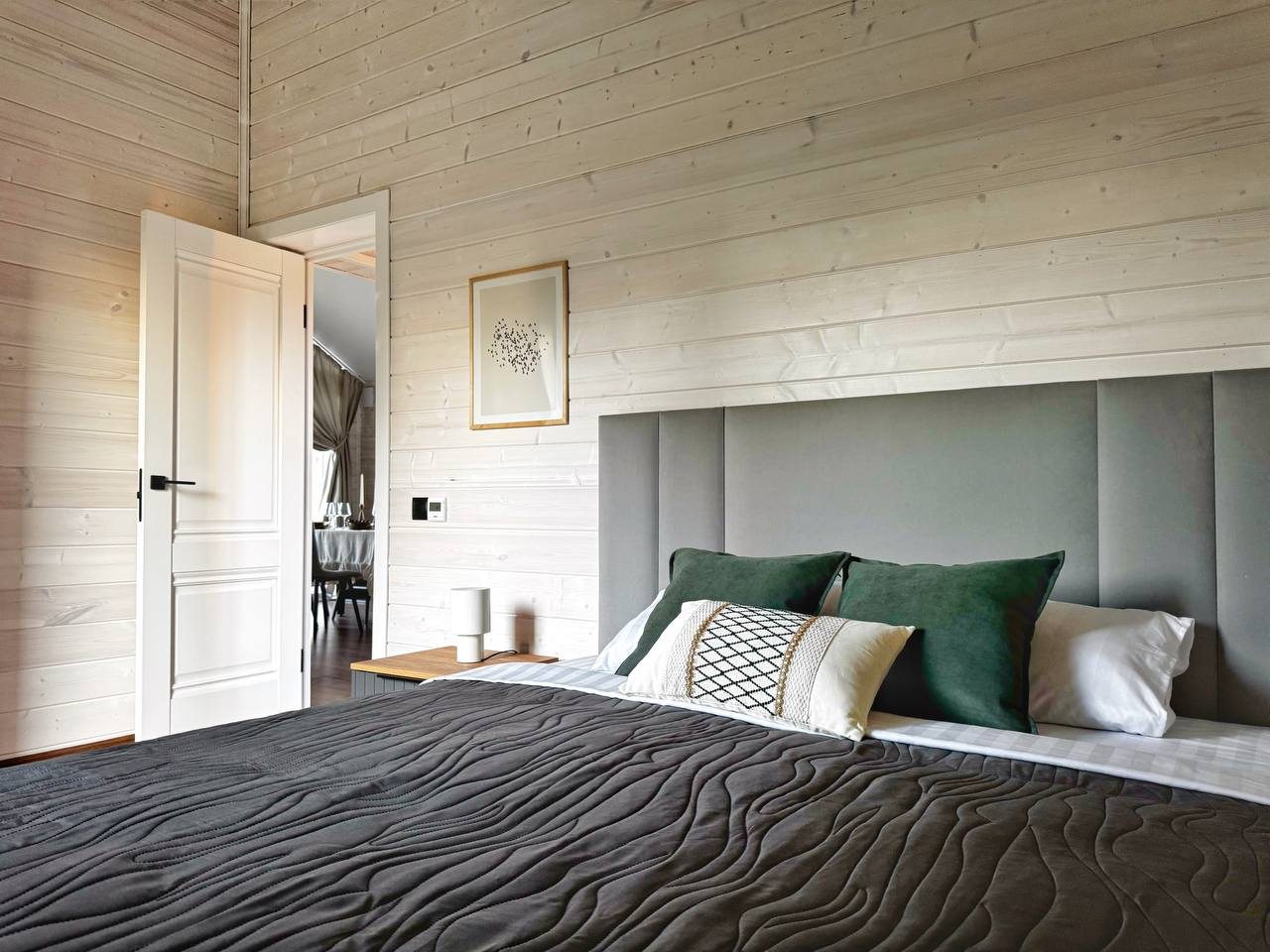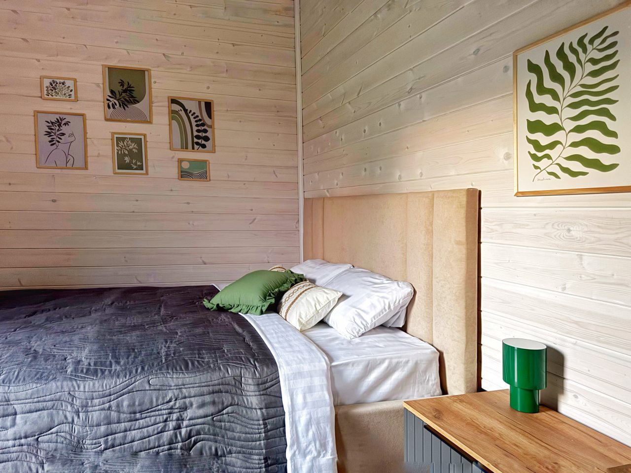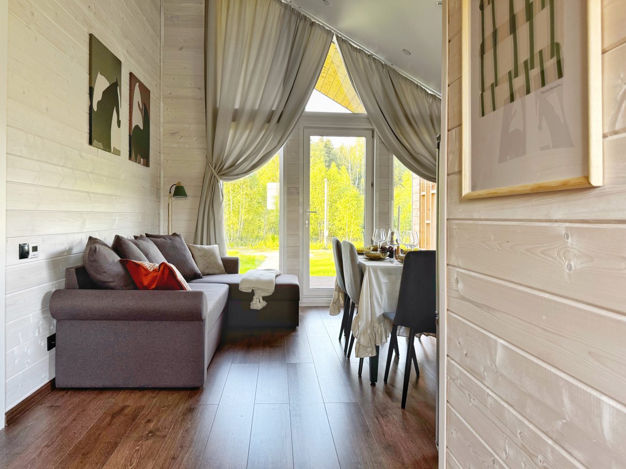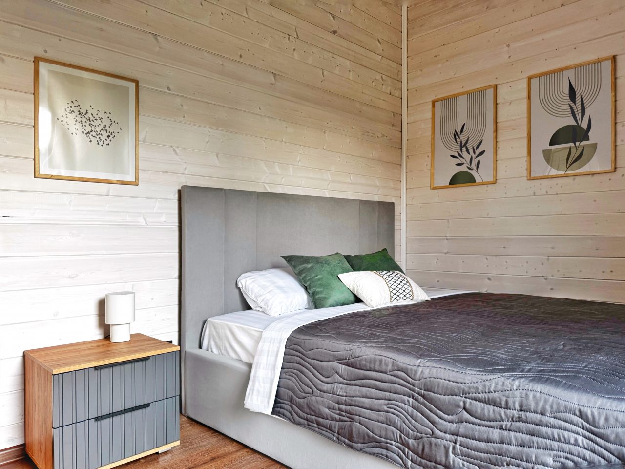 Для размещения предлагается шестиместный дом площадью 65 квадратных метров, где с комфортом можно разместиться семьей или компанией. Внутри предусмотрены все необходимые современные удобства, в том числе 2 кровати размера King-size, телевизор, раскладной диван, комплект свежего постельного белья, различные источники освещения, шкаф с зеркалом, а также санузел с душевой и стиральной машиной.