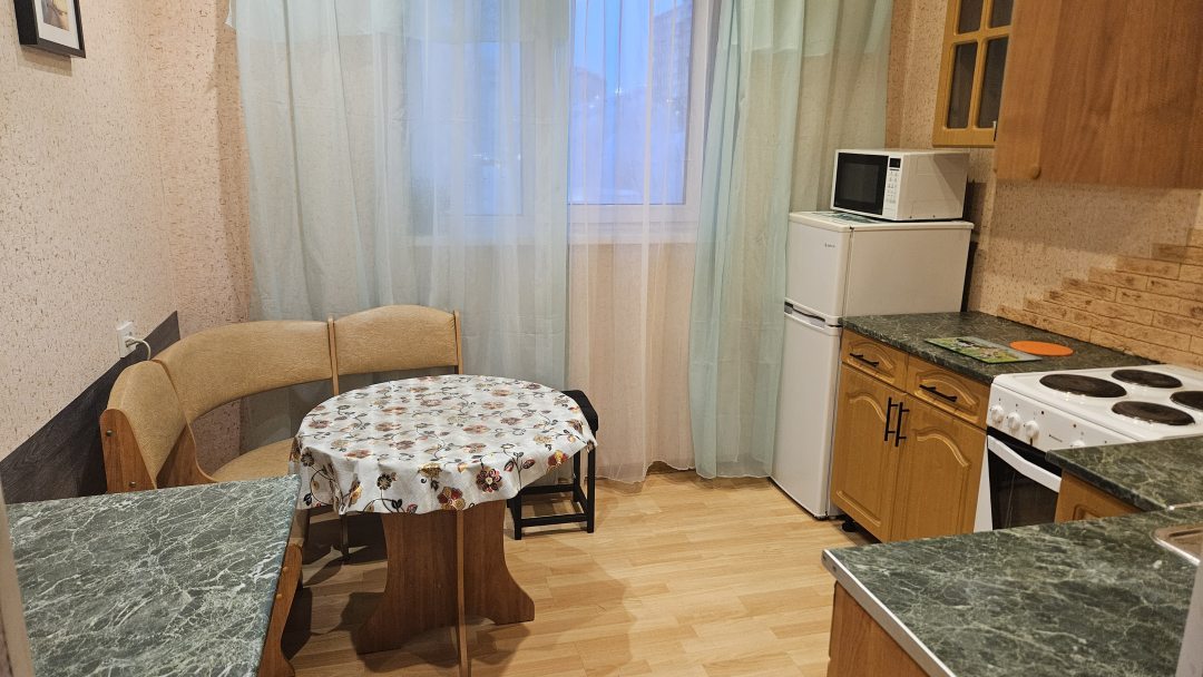 Однокомнатная квартира в Мурманске, куда я приехала к будущему мужу, меня устроила. Мы тут несколько дней прожили, пока не арендовали долгосрочный вариант. Заселились как приехали, все нам показали, рассказали, понравилось такое внимание. В квартире обычная мебель, но чистое белье, посуда есть, санузел в порядке.