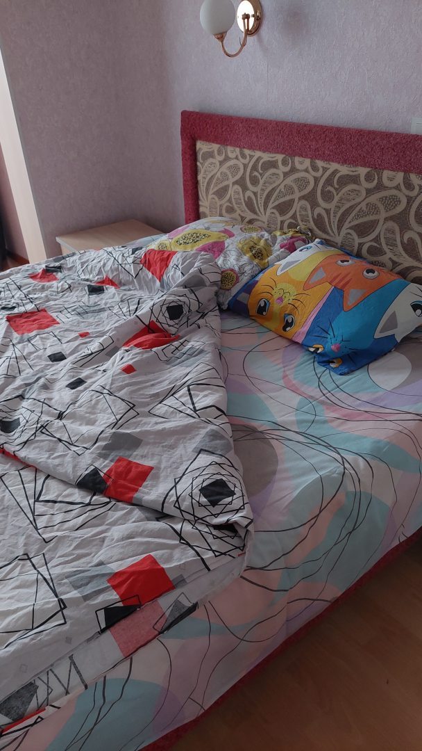 Из недостатков: очень грязная душевая кабинка! Плесень и старая шрязь везде! К раковине страшно подойти.! Сан.узел просто в удручающем состоянии ! Постельное белье всё разноцветное и даже не комплектом, кровать жёсткая и скрипучая, на подушках страшно спать! И главное очень холодно в квартире. Мы были с детьми, пришлось спать одетыми, потому что в нашей просьбе дать нам доп.обогреватель нам отказали....