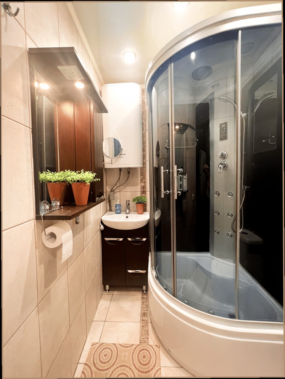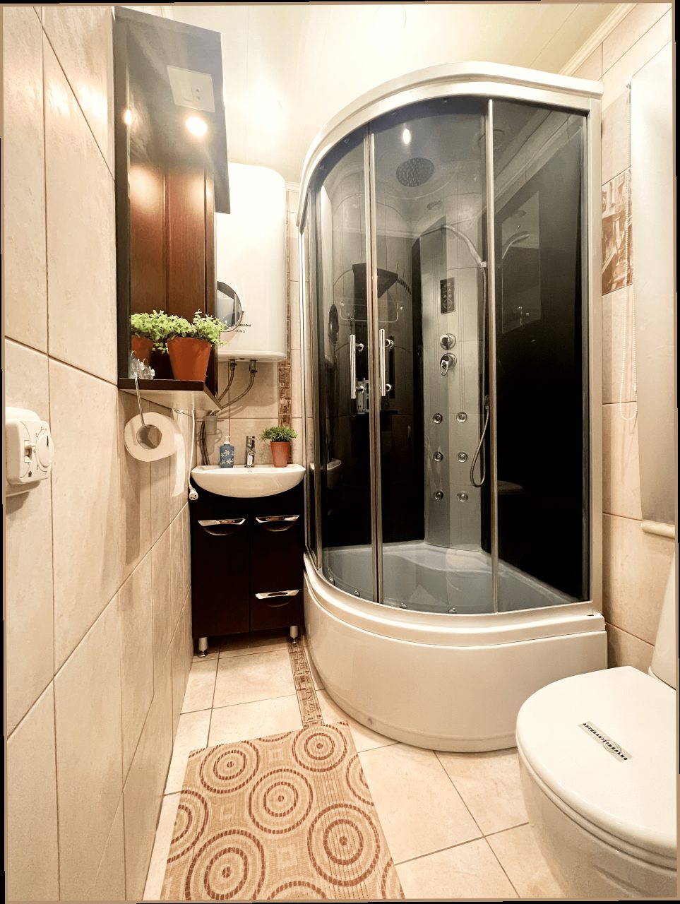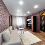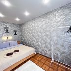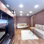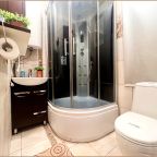Апартаменты оформлены в современном стиле и укомплектованы: удобной кроватью, комодом, мягкими диванами, зоной для хранения верхней одежды, телевизором. В санузле установлена душевая кабинка и есть средства гигиены.
