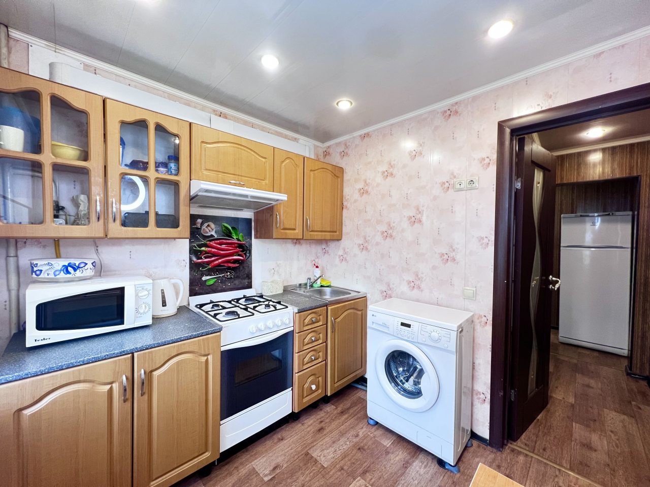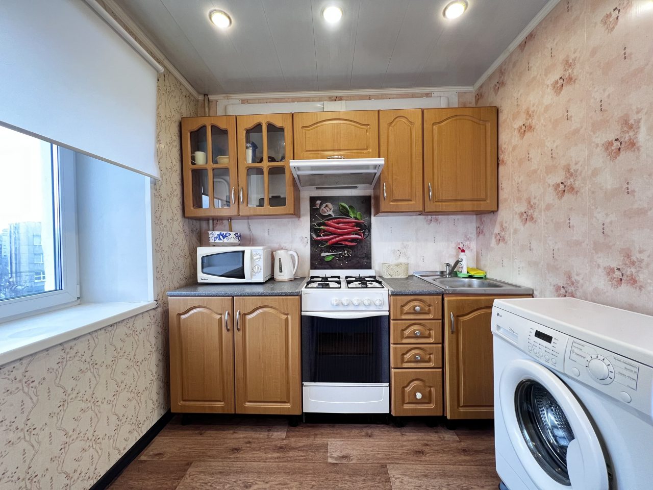 На кухне имеется необходимый набор бытовой техники для самостоятельного приготовления блюд: плита и духовка, микроволновая печь, чайник и посуда. Неподалёку работает кафе «Тёщины блины», где можно вкусно и сытно пообедать.