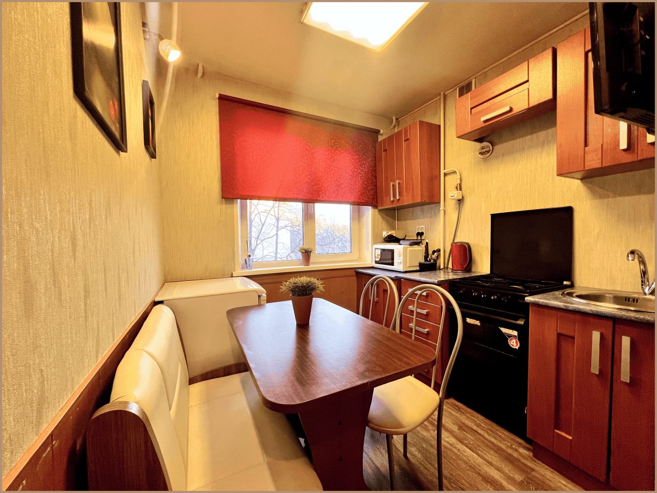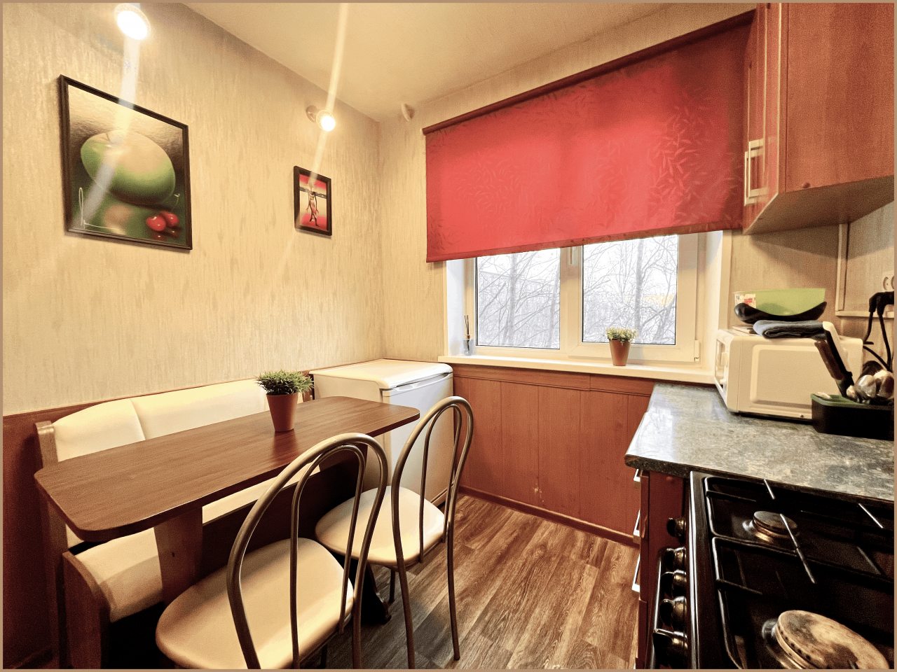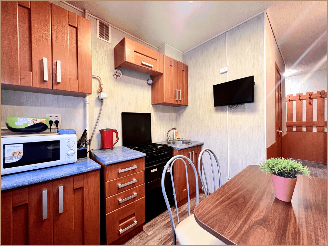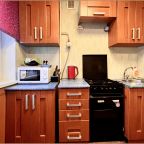 В кухонной зоне есть необходимые предметы бытовой техники, в том числе плита, электрический чайник, микроволновая печь и набор посуды. Рядом работают кафе и рестораны, где гости могут провести приятный вечер, наслаждаясь любимыми блюдами.