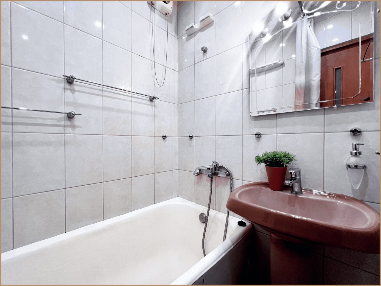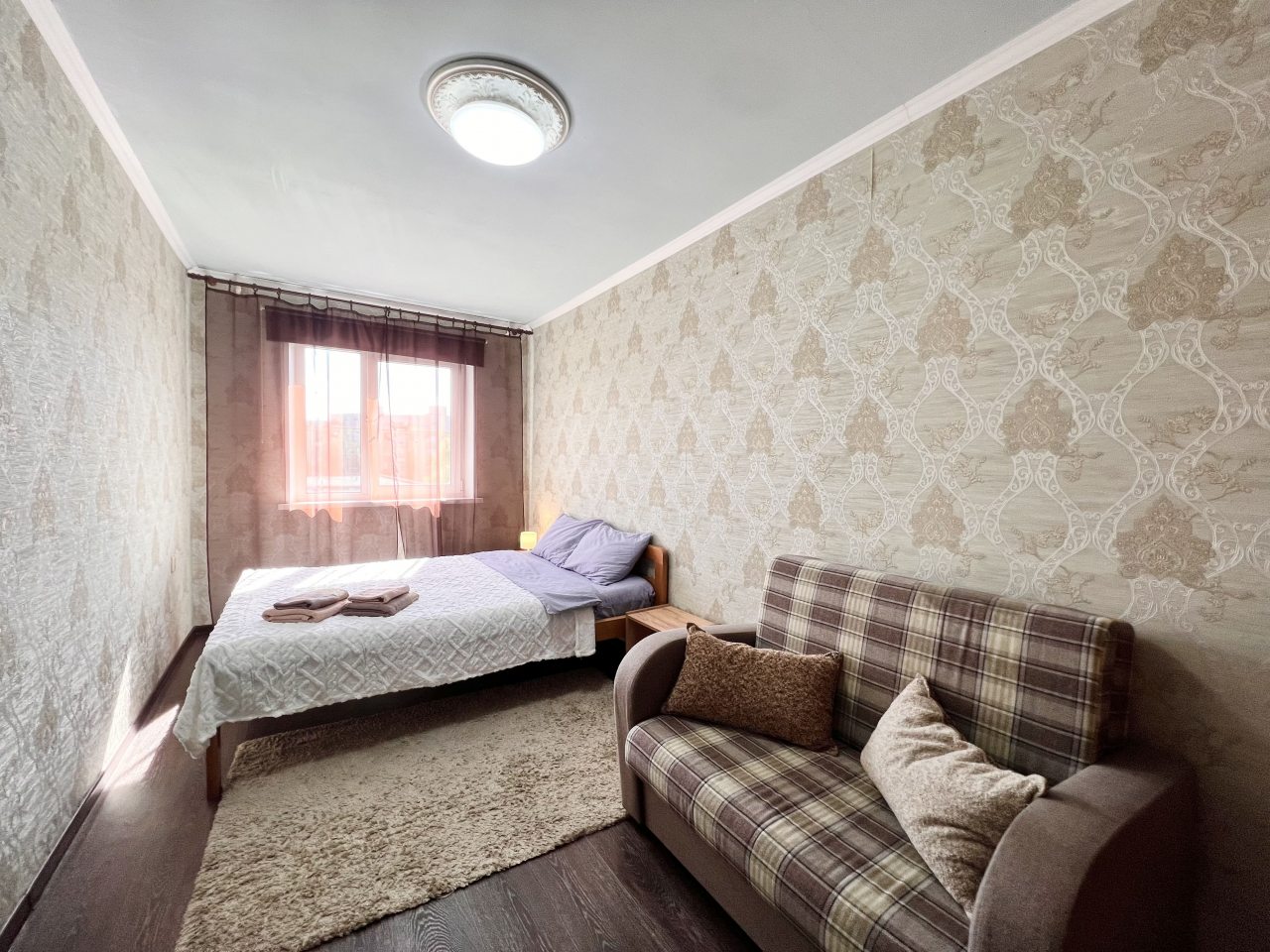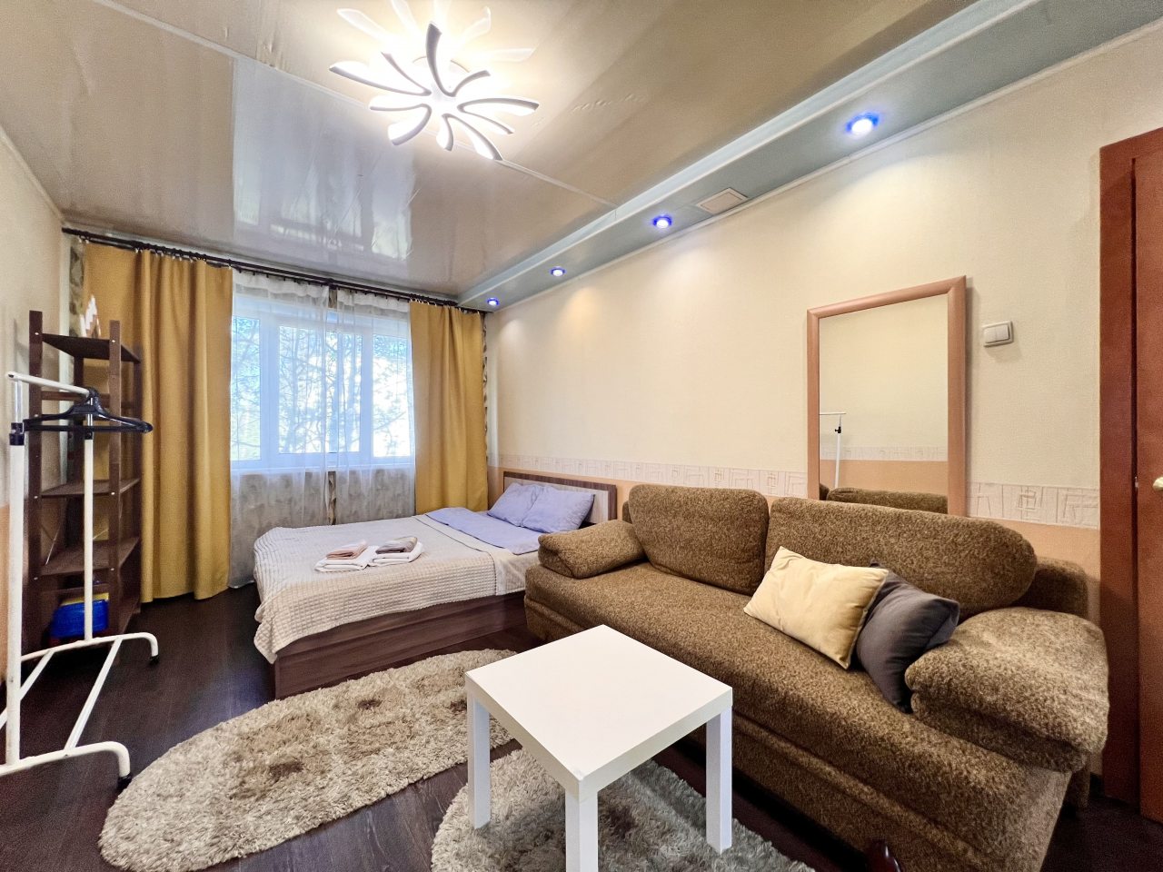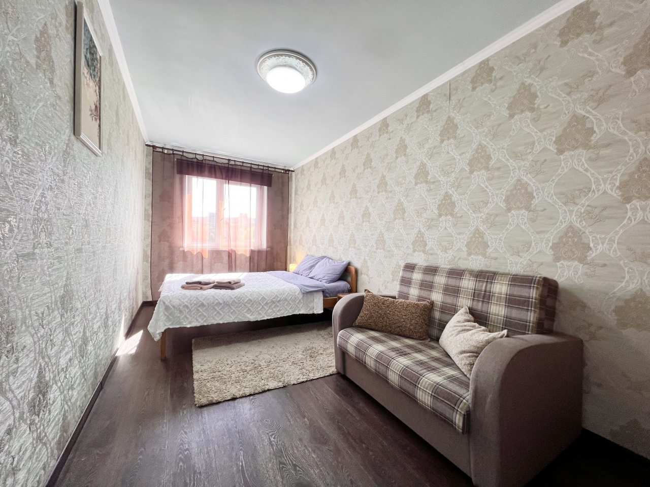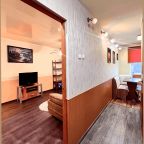 Для размещения предоставляется просторная квартира с современным ремонтом и планировкой. Здесь с комфортом может расположиться небольшая семья или компания друзей, так в апартаментах две спальни. В гостиной предусмотрены такие предметы техники и мебели, как диван, столик, телевизор, напольная вешалка. В ванной установлен водонагреватель и стиральная машина.